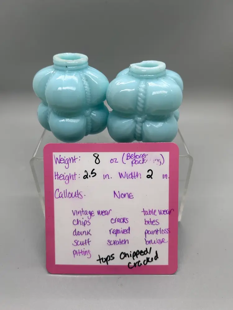 There is some chipping around the threads on the top and the shakers do not have tops.