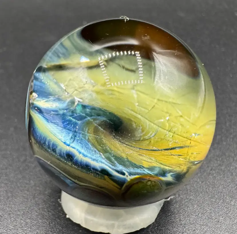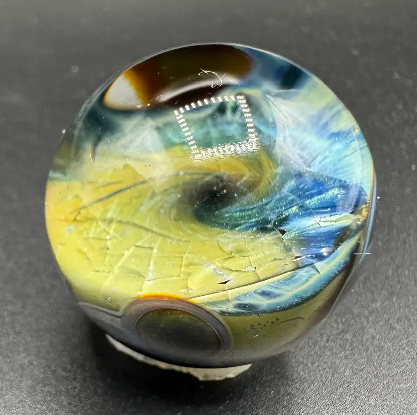 Contemporary Art Glass Marble Galaxy Planet Internal Crackle 1.23”
