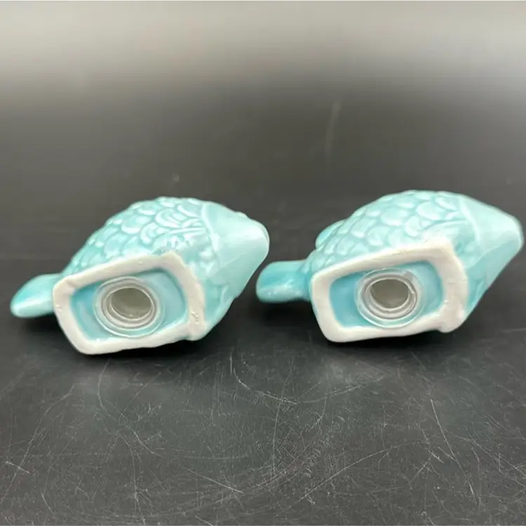 3”W 11/4”D 2”T no chips, cracks or brakes and wonderful contemporary condition. Very nice graze. It does have a glaze chip on the fin.