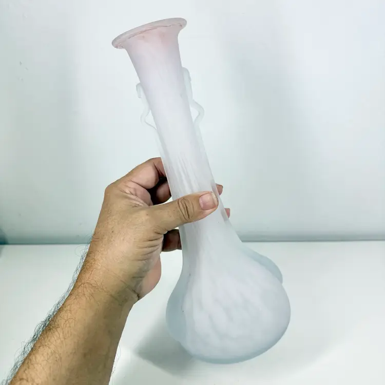 Frosted gradient glass from lavender to pink with subtle pattern. In fantastic condition.