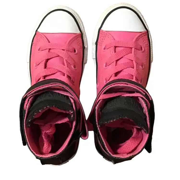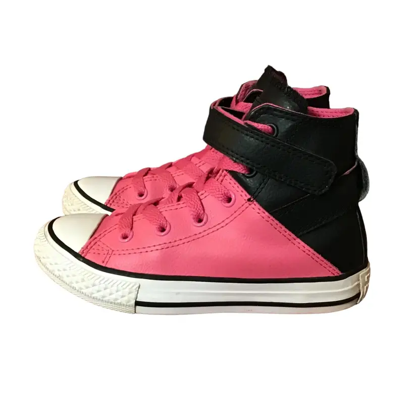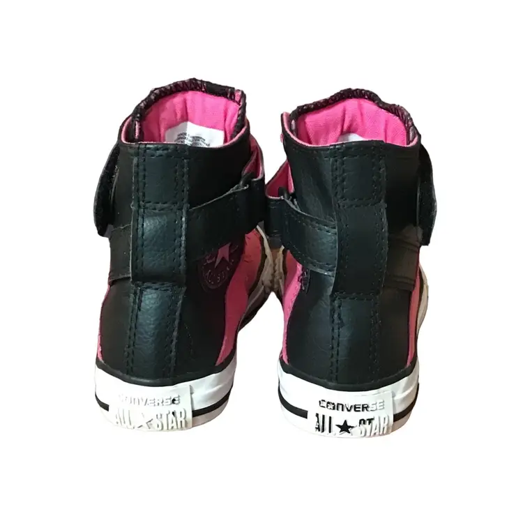 Converse CTAS Brea Youth Girls Size 12 Hi Top Pink Black Leather Sneakers Preowned