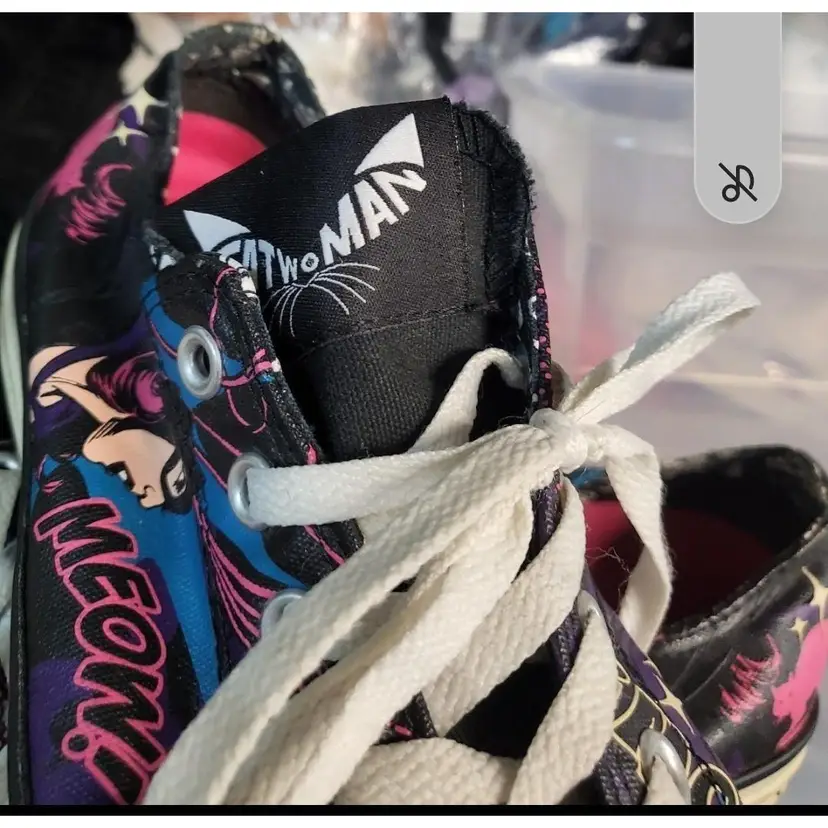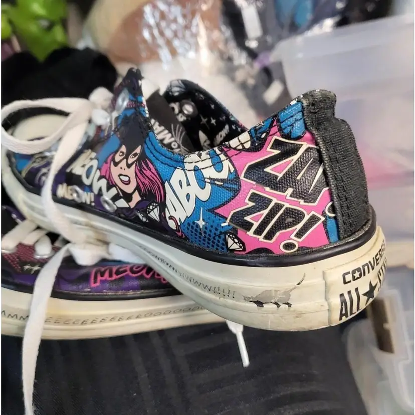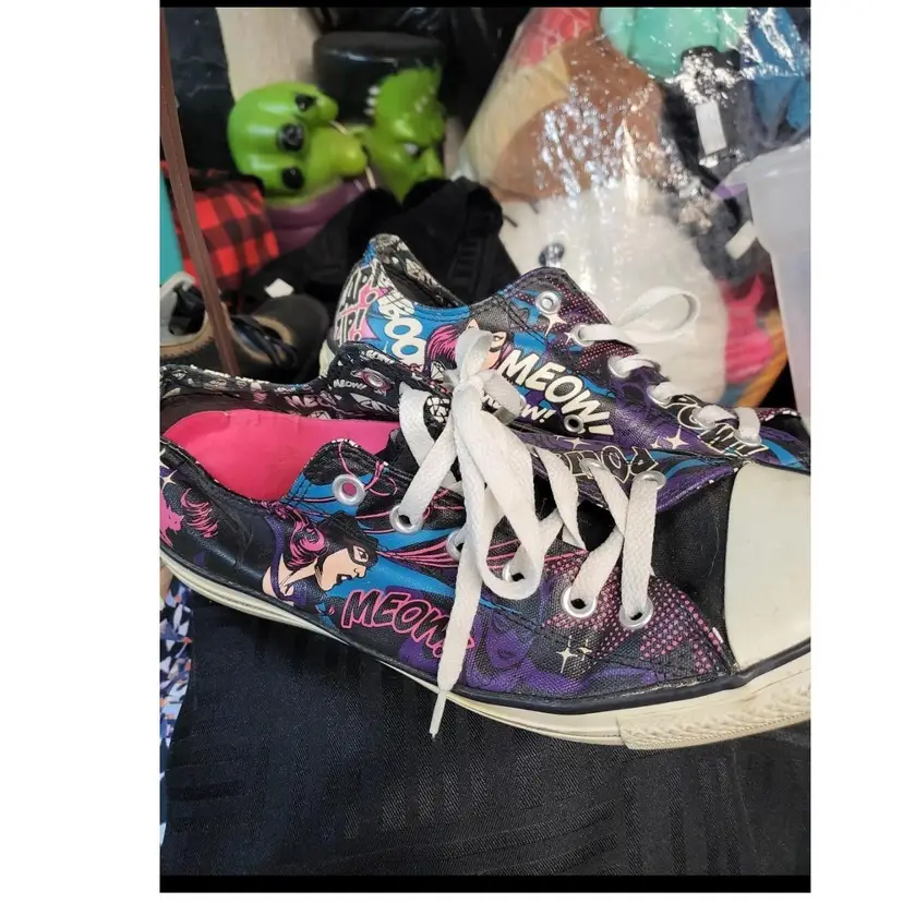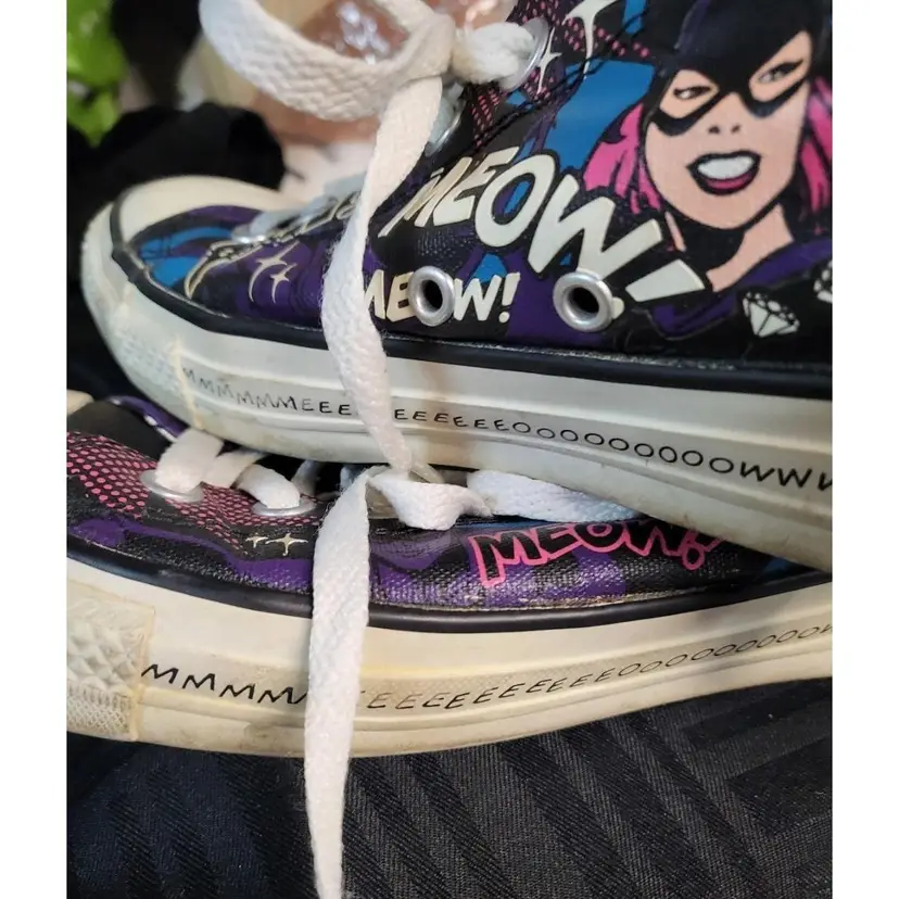 Limited edition converse sneakers DC edition Catwoman Graphics in good condition Out sole in good condition No tears or damage noted Mens 8 Womens 11