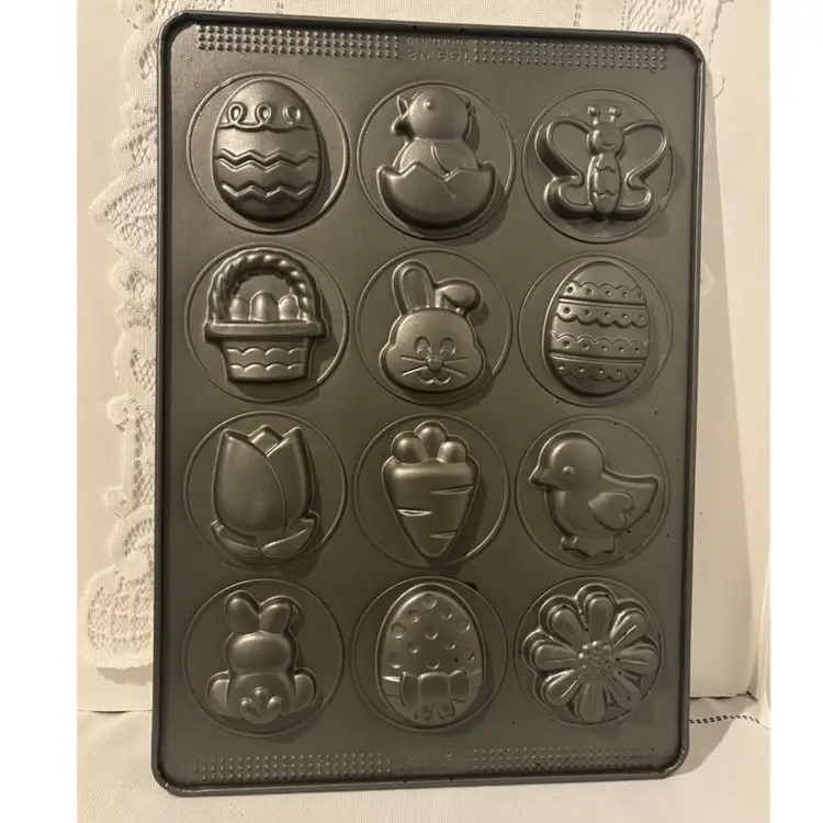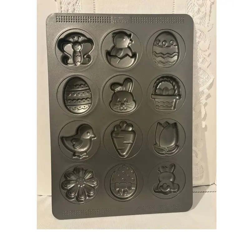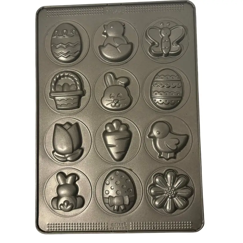 Sweet Creations 12 Different Cavity Easter Spring Nonstick Cookie Pan Baking Pan Butterfly Bunnies Chicks Eggs Carrot Flowers Basket 16”x 11”