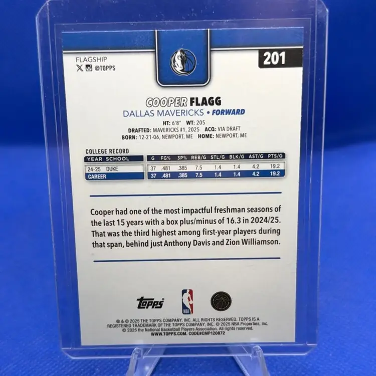 Cooper Flagg 2025 Topps NBA RC Dallas Mavericks
