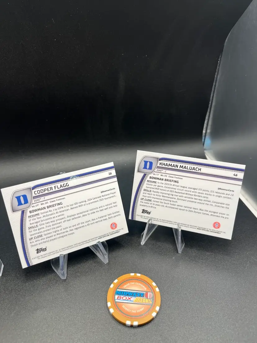 24-25 Bowman Chrome U Duke 1st Round pick duo! Cooper Flagg and Khaman Maluach. Both 1st Bowman cards.