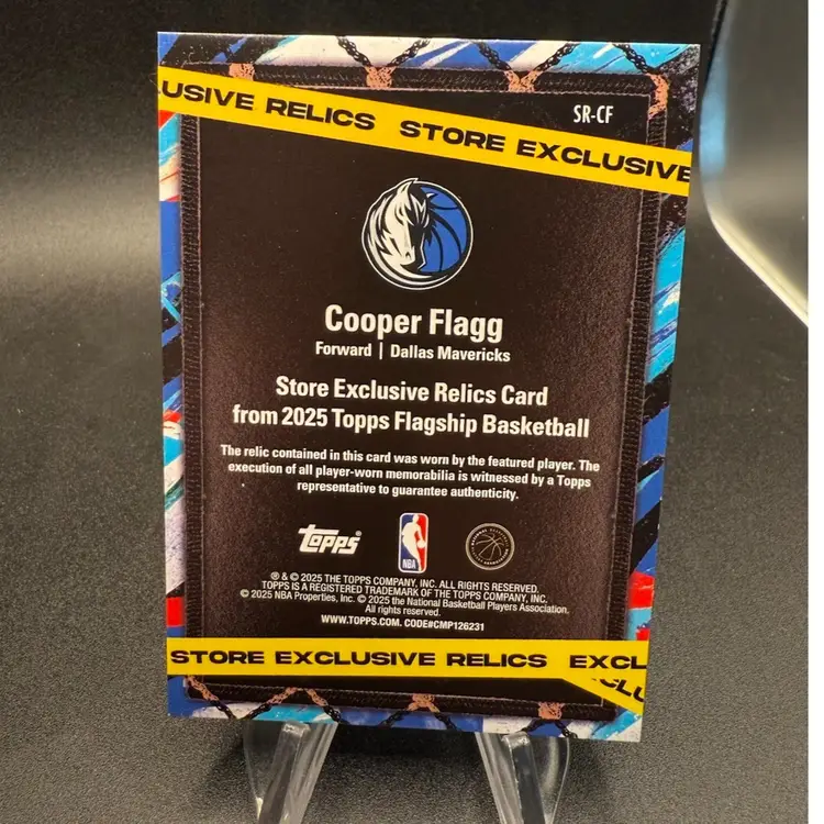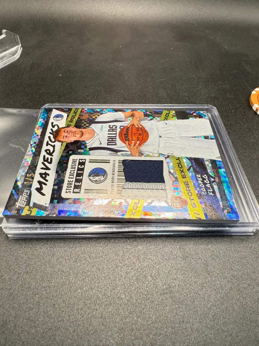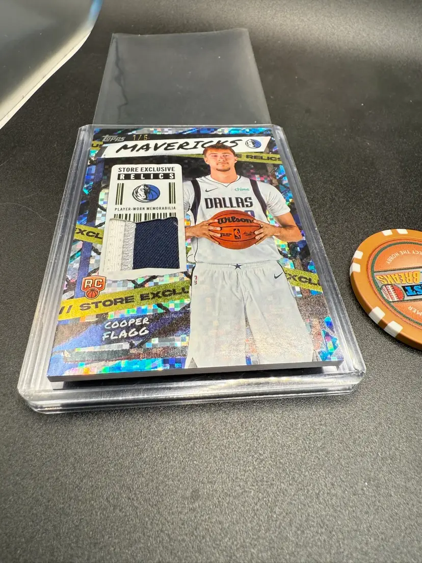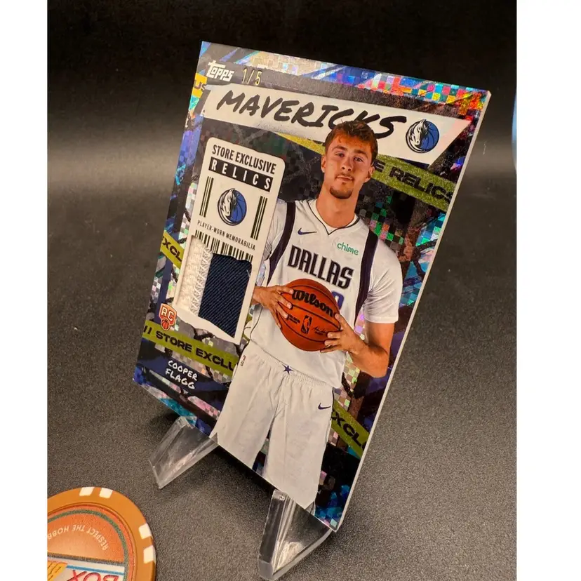 This is a three-color player worn relic of Cooper Flagg #1/5 from Topps NBA Black Friday exclusive release. Please see all pictures before purchasing. One corner a little soft, otherwise great looking card.