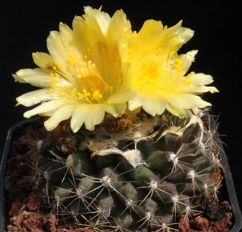Copiapoa tenuissima is endemic to south of Antofagasta, Northern Chile. It is native to the coastal deserts on the steep mountain base among fragmented stones. The long tuberous root of this copiapoa is buried deeply in these soils which are very poor in organic matter. In the area where these plants grow there is very little rain. In this coastal desert climate, the early morning is fog provides a significant part of the water they need. By the middle of the morning however, the fog cover dissipates and sun breaks through the gaps warming the ground. The common presence in habitat of plants with juvenile spination forms on old taproots is due to the frequent grazing damage inflicted by donkeys and Guanacos. Copiapoas are rare and are one of the most desired cacti that every collector should have. They are one of the easiest cacti to grow, they require much less water than common cacti and are a summer grower species. Considering that tenuissima comes from a habitat with an extremely arid climate, they are remarkably tolerant of pot culture, but susceptible to overwatering. They require appropriate air circulation. It is a slow growing cactus kept for the beauty of its form that will make clumps given the best conditions. It likes very coarse mineral cactus mix soil, but can become too elongated if compost is too rich. Use a pot with very good drainage, make extra holes if necessary. It requires light but regular waterings in summer, but let the soil mix dry between waterings, DO NOT overwater, it must be kept dry throughout the winter. They need to be kept in a cool place during winter rest and are resistant to light frost if kept on the dry prior to, and during cold weather. Not tolerant of prolonged periods of frost. Requires full sun or light shade, tends to bronze in strong light, which encourages flowering and heavy spine production. Light shadow may be useful in the hottest summer days.
