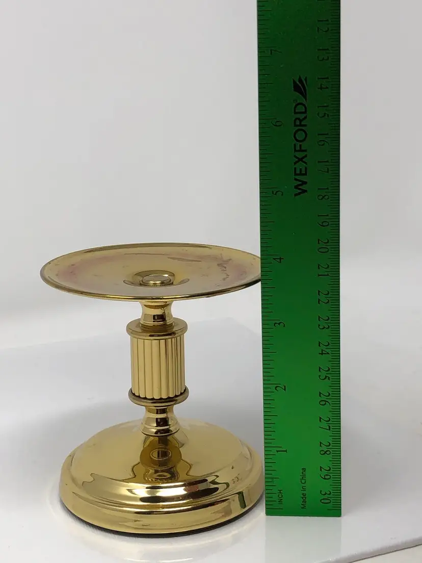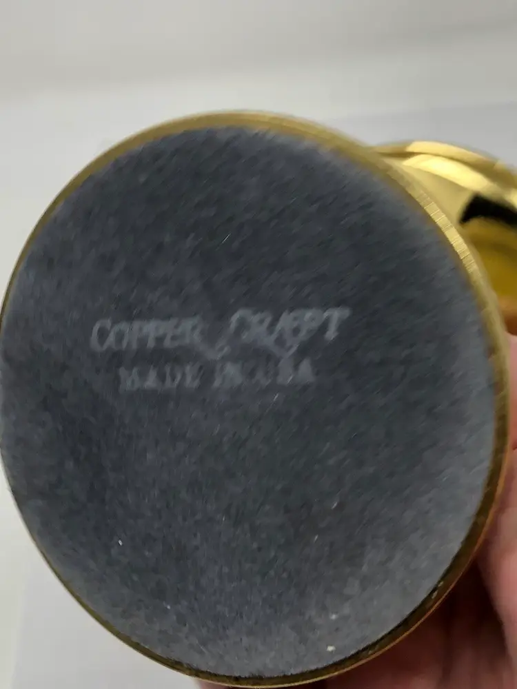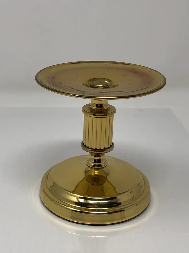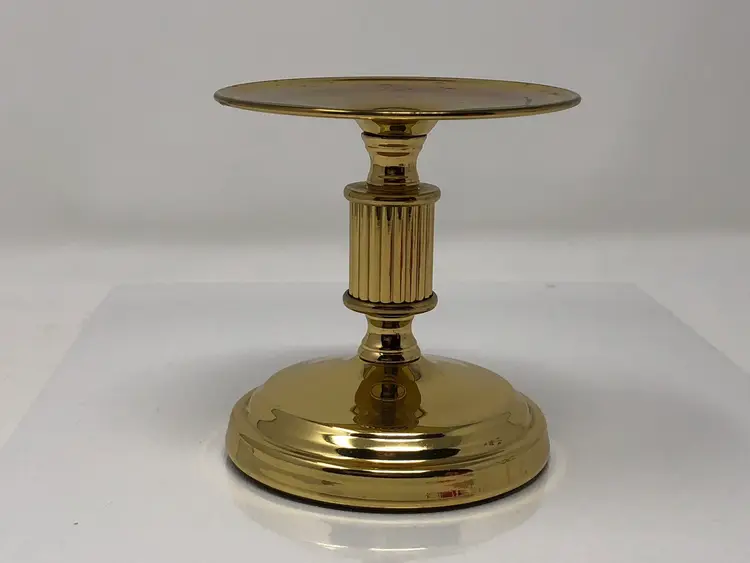 4" round brass candle holder with felted bottom marked Copper Craft USA. Good vintage condition
