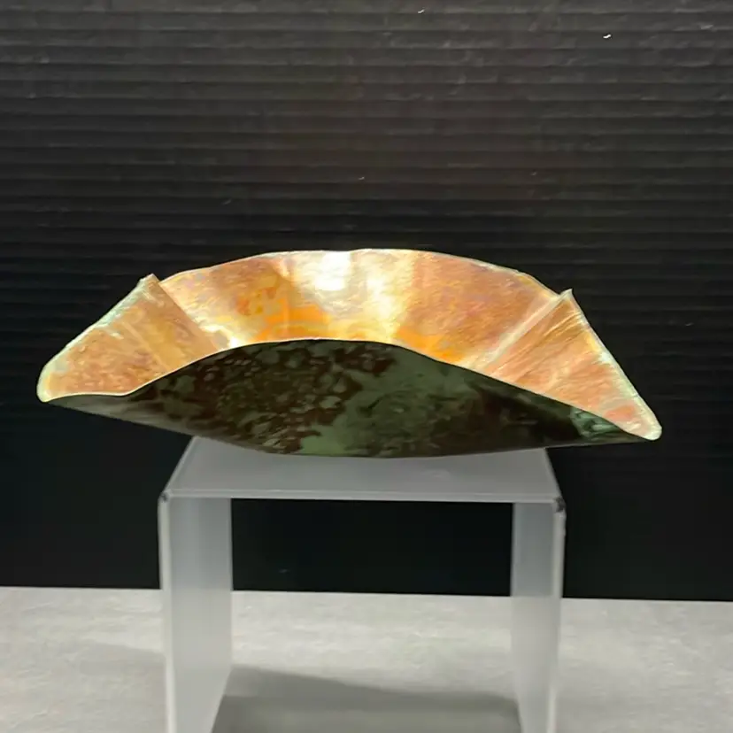 Vintage unbranded copper wavy bowl or dish, possibly used as a catch-all or decorative accent piece. This piece has a lot of patina.