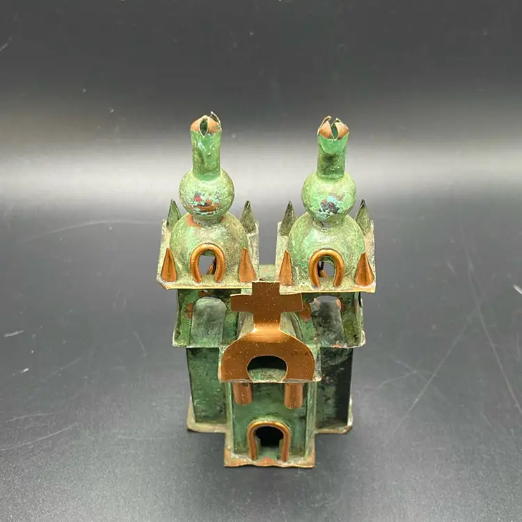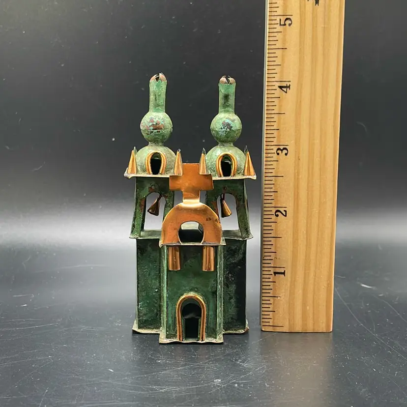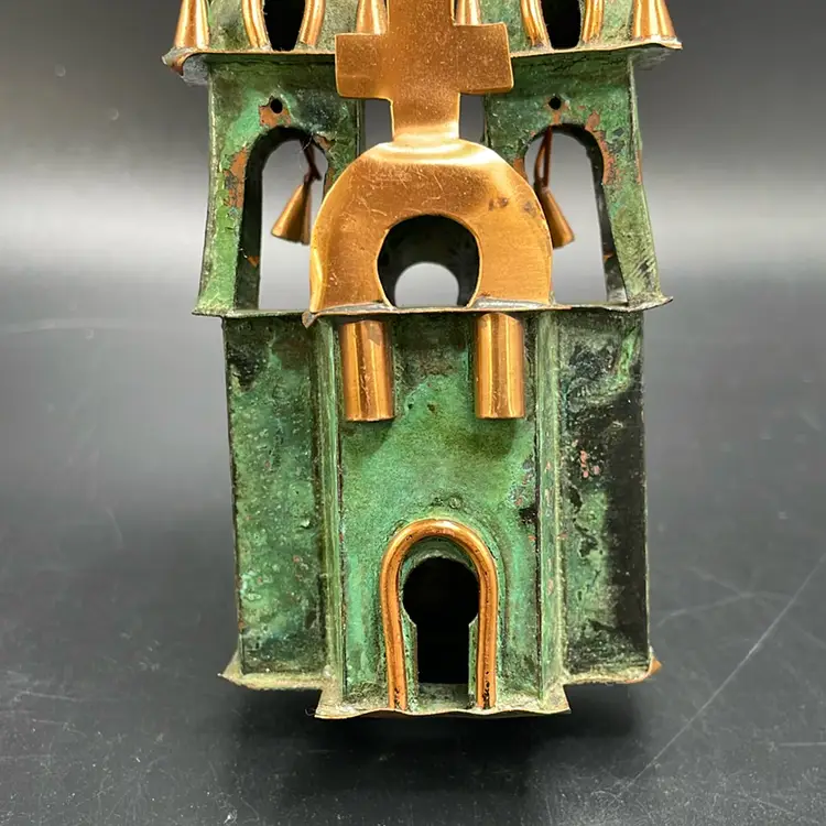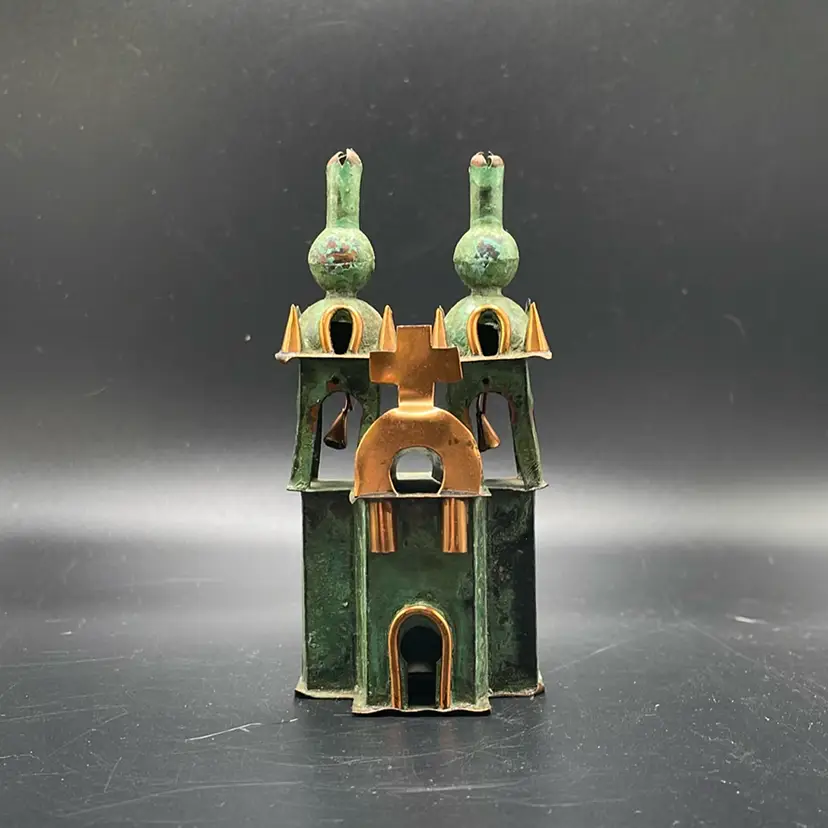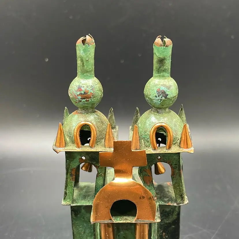 This is a small vintage copper church sculpture. Measures approximately 4" tall. No major flaws.