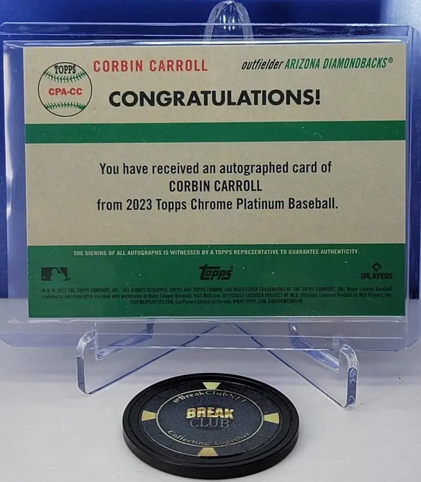 Corbin Carroll 2023 Topps Chrome Platinum RC Auto #CPA-CC Arizona Diamondbacks (Includes FREE BMWT Shipping!
