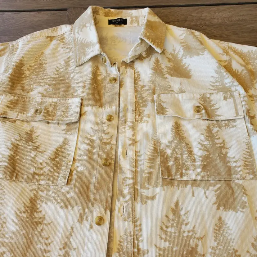 This shirt is machine washable, and the XL size makes it a great fit for any man. Whether you're looking for a casual shirt for everyday wear or something a bit more formal for a business meeting, this corduroy shirt from Forever 21 is sure to impress. So why wait? Add it to your wardrobe today!