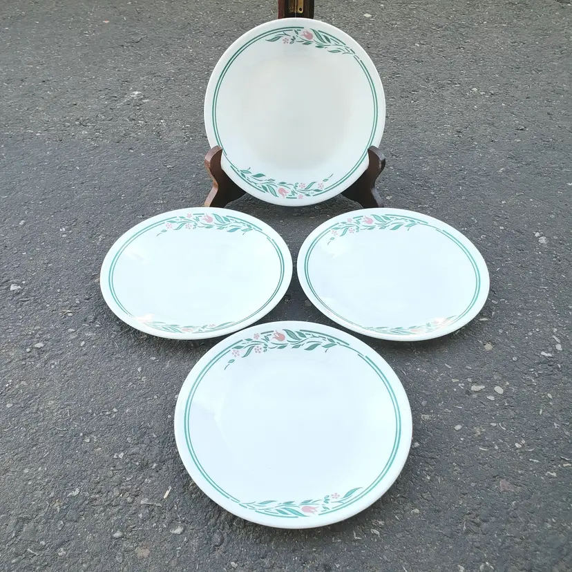Corelle ROSEMARIE Pattern Bread & Butter Plate 6¾" × 4 Corning Ware Discontinued. Used condition with some scratches, stains, dust, dirt, etc. Please view all the photos and read the entire item description and please ask any questions prior to purchase when possible.