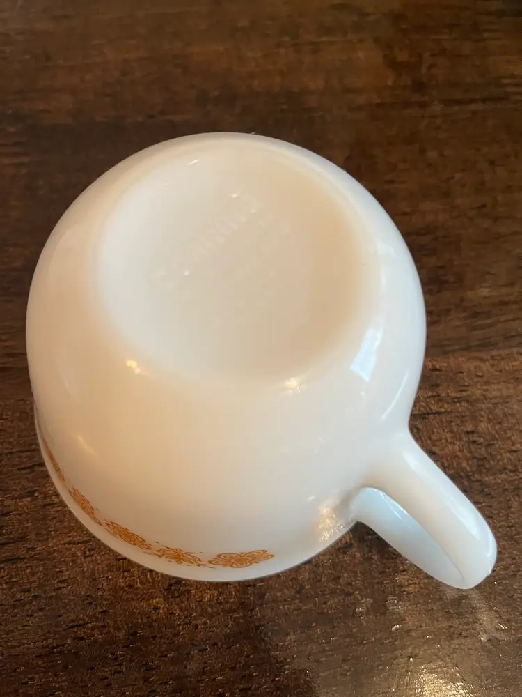 Set of 3 vintage Corning teacups in golden butterfly pattern. Good condition- no chips, cracks, or noticeable flaws.