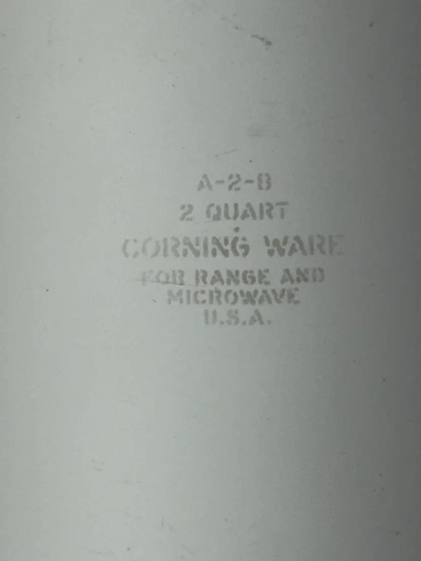 Features the hologram Corning Ware stamp, 1972-1979 production. Marked A-2-B 2 Quart, Corning Ware, For Range and Microwave, U.S.A.