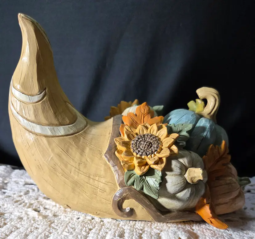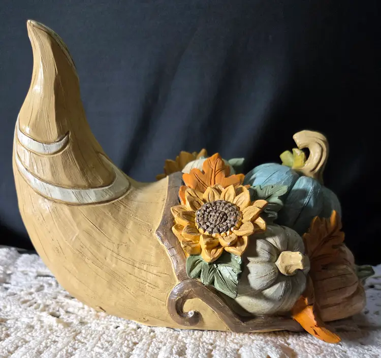 Resin - Looks like Jim Shore but is Home Goods. Measures 10" wide x 8" tall.