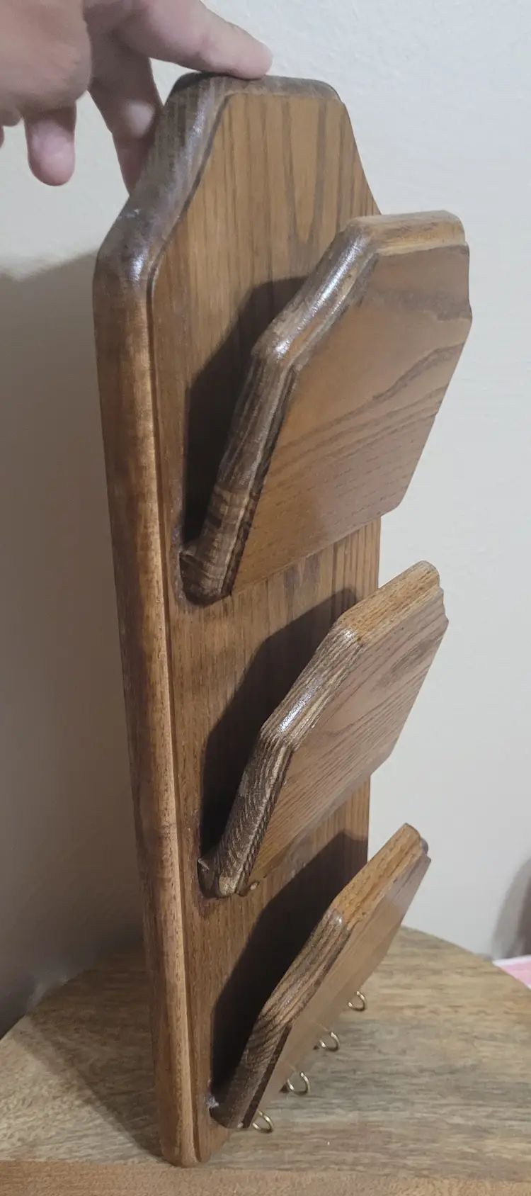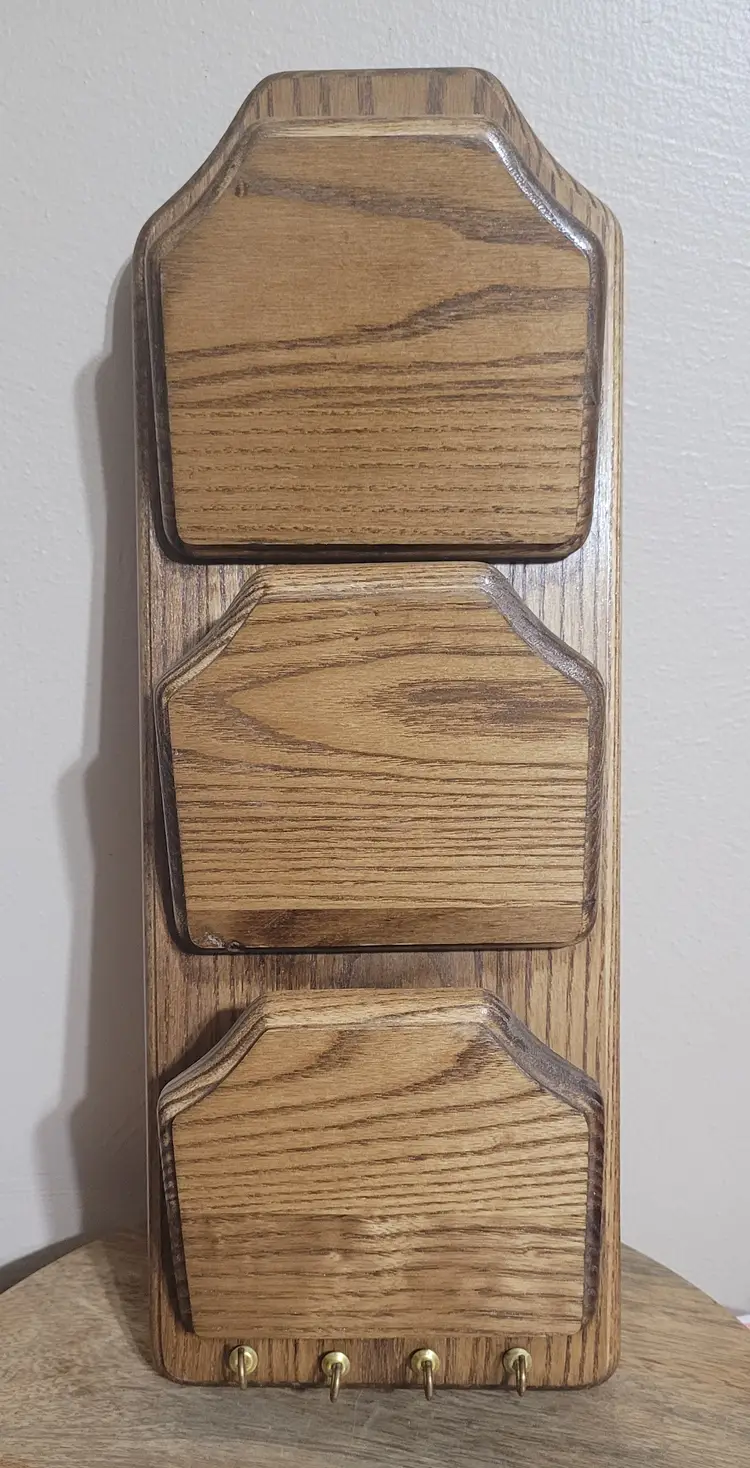 The Cornwall USA Letter Holder is a stylish and functional addition to any kitchen or dining area. Made from solid oak wood, this letter holder features a set of hooks perfect for holding letters, bills, or other small items. With a height of 16 inches and a width of 5.5 inches, this holder provides ample space for organization while adding a touch of natural charm with its oak wood tone. The Cornwall brand ensures quality and craftsmanship in this practical and attractive piece of home decor.