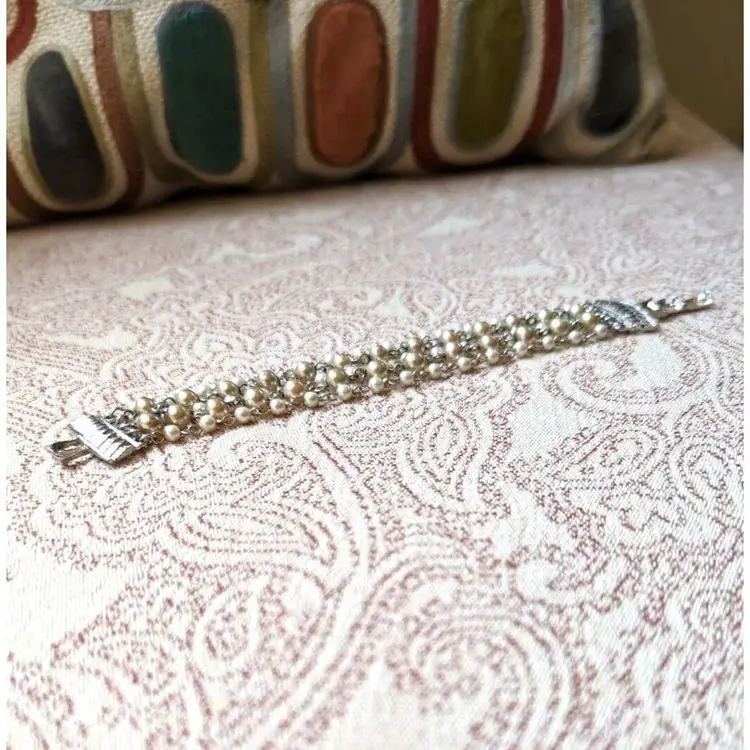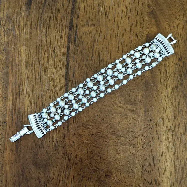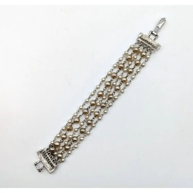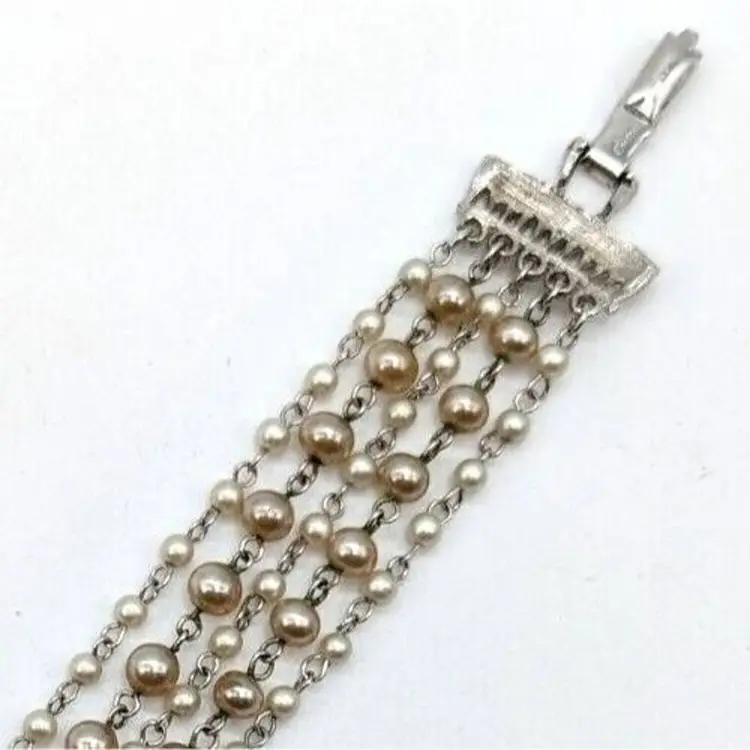 Coro Faux Pearl Seven Strand Bracelet Signed Vintage