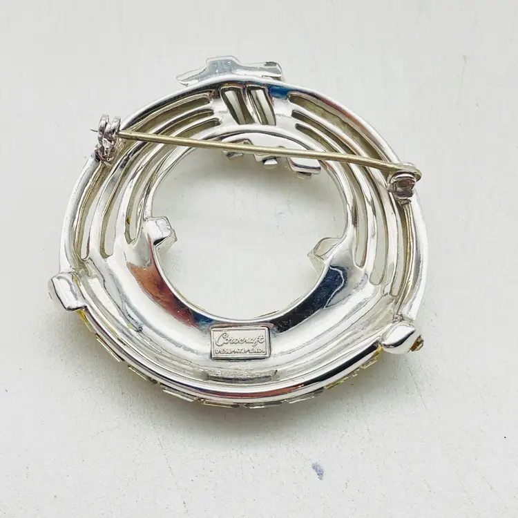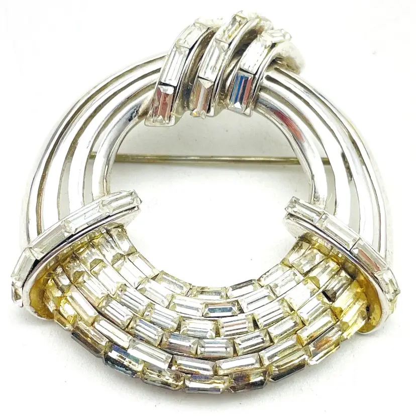 COROCRAFT Pave Rhinestone Wreath Pin Silver Tone Des Pat Pend Baguettes Glam
