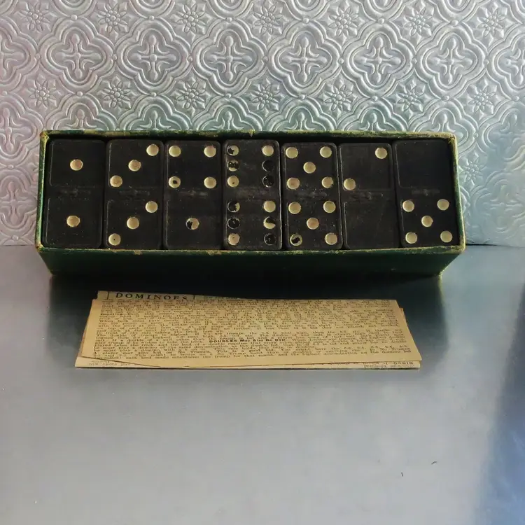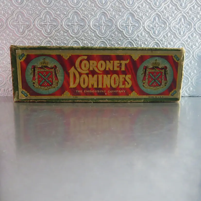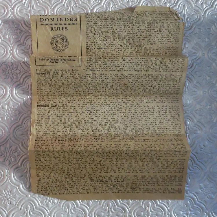 These dominoes were made in the 1920s by The Embossing Company in Albany, NY. ( I grew up near this city, but not at that time, not that old!).