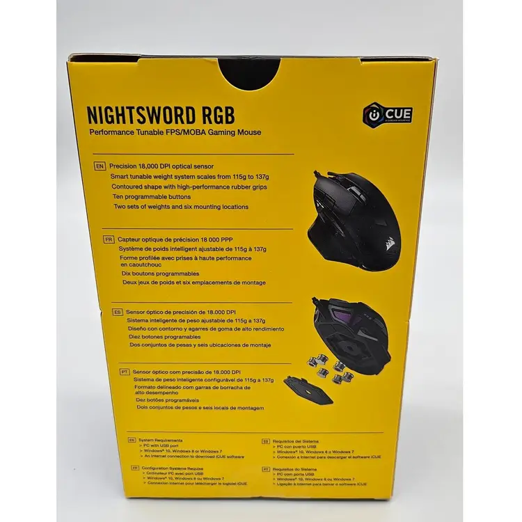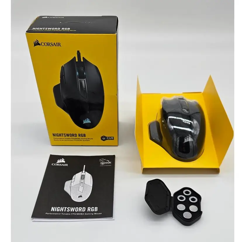 Lightly used, like new. Comes with six weights, weight case, and original booklets. iCue RGB lighting and all accessory buttons are in good working condition.