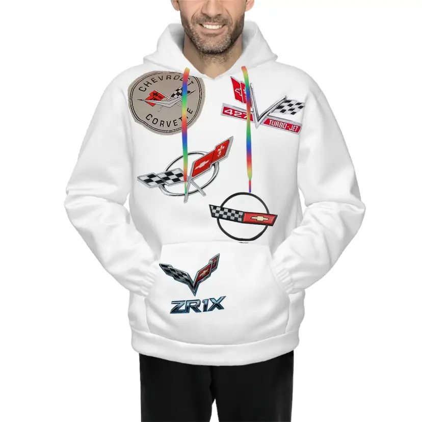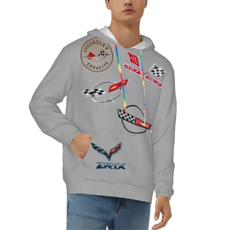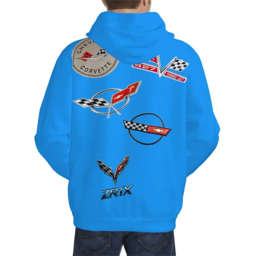This Corvette Heritage Hoodie is built for real Corvette people — the ones who know the history, respect the badge, and live the lifestyle. Featuring a bold all-over layout of iconic Corvette racing emblems, vintage crossed-flags, Turbo-Jet heritage, and the aggressive ZR1X mark, this piece hits hard without trying too hard.