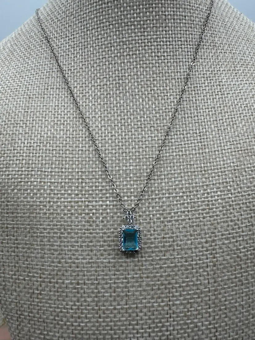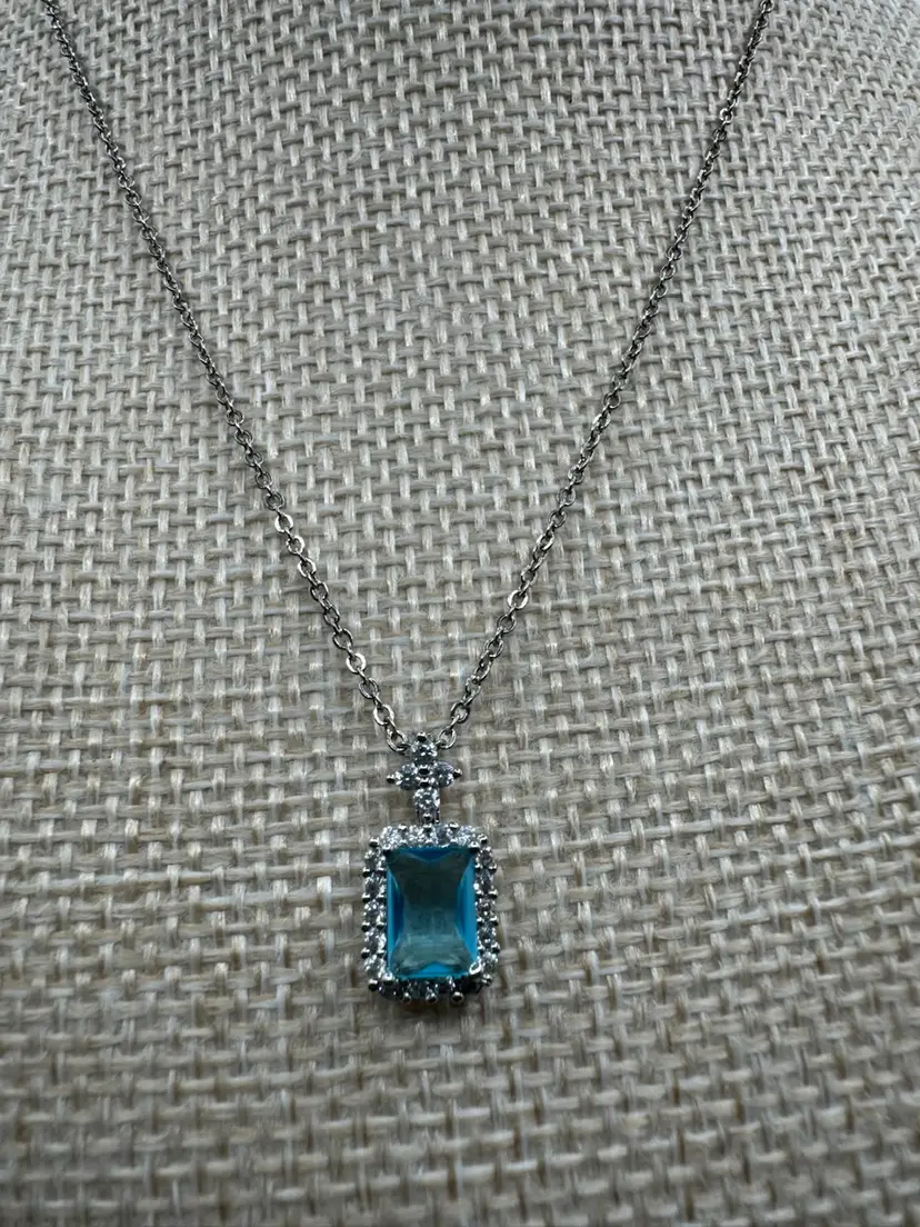Costume Blue Rhinestone Necklace. Great condition. As shown on video.