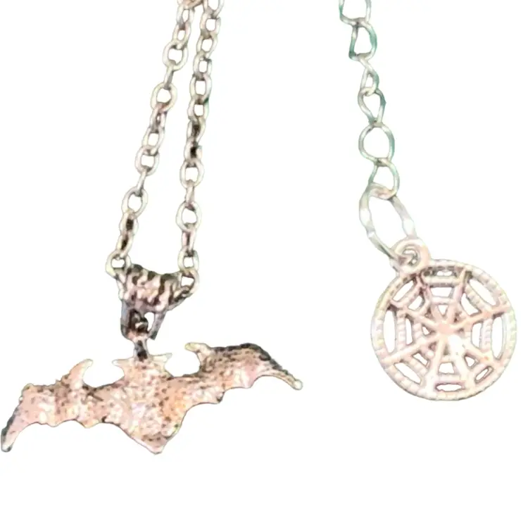 Handcrafted by me. Approximately 16” long chain. With 3” extender chain. Please review photos. Really sweet. Made of vintage and new parts. Made of aluminum and mixed metal.