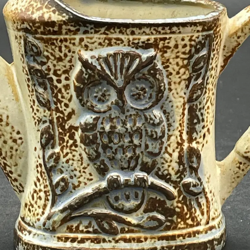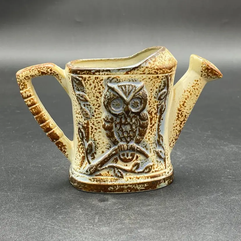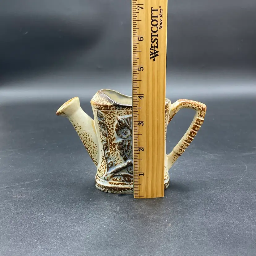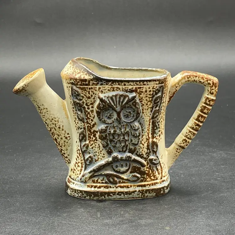 This is a vintage Counterpoint watering can with owl design ceramic planter. Made in Japan. Measures approximately 4" tall. No chips or cracks.
