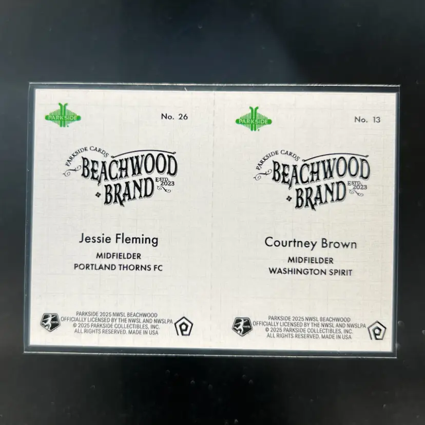 Courtney Brown & Jessie Fleming 2025 Parkside Beachwood Brand Beachwood Squared Soccer Card