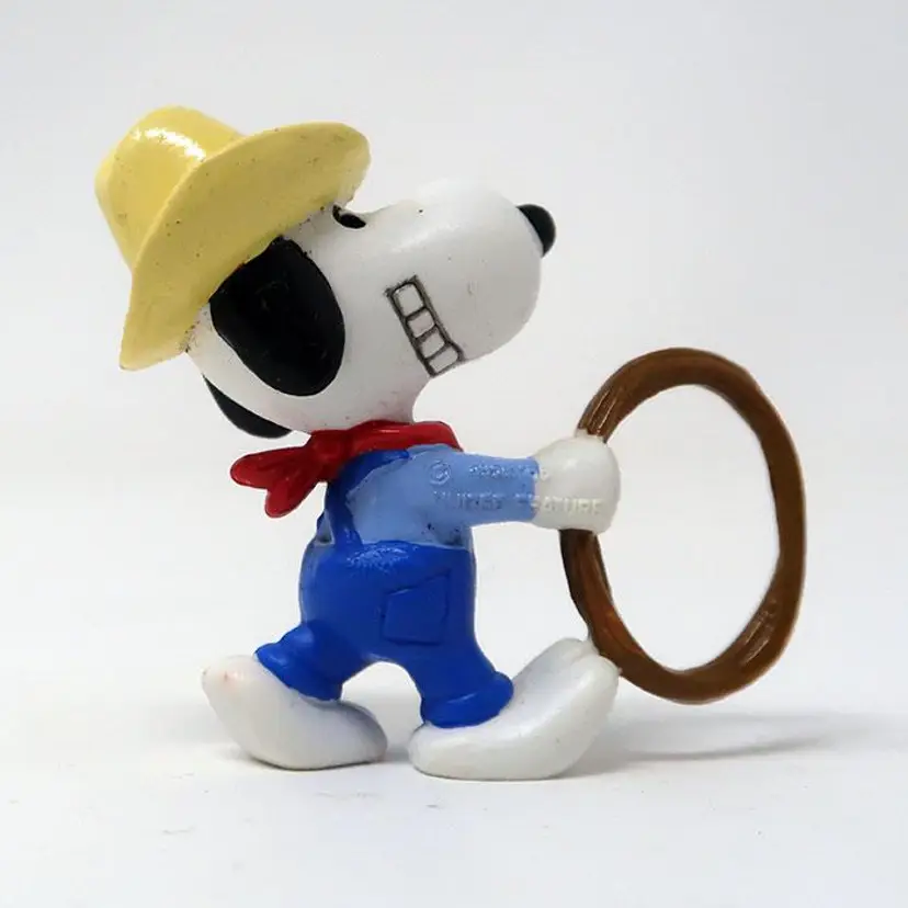 Yeehaw! This Cowboy Snoopy figurine stands about 2.5 inches tall, sporting a yellow hat, red bandana, and blue overalls.