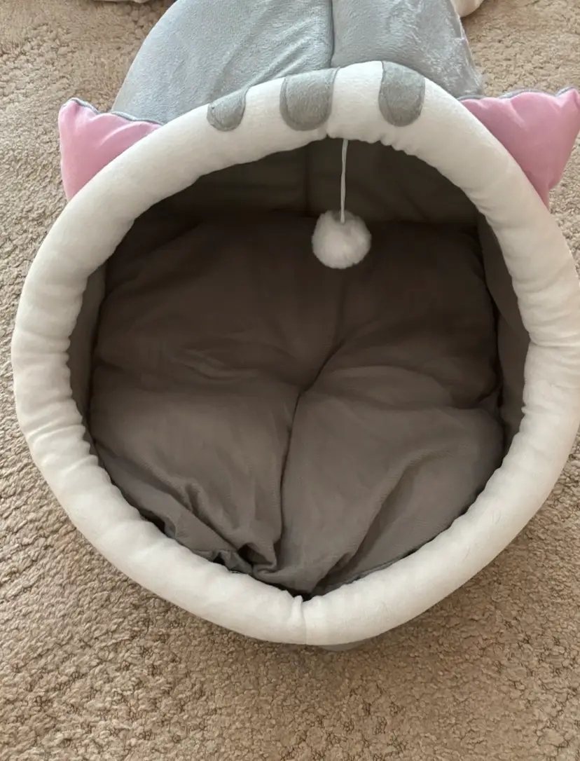 Give your cat a cozy retreat with this adorable cat bed pink ears. The soft gray interior ensures comfort for your pet. Perfect for any cat-loving home.