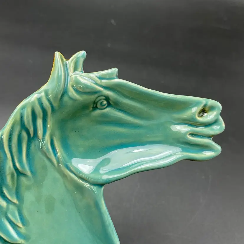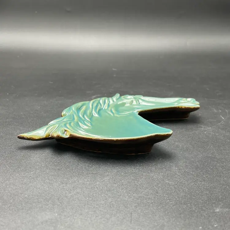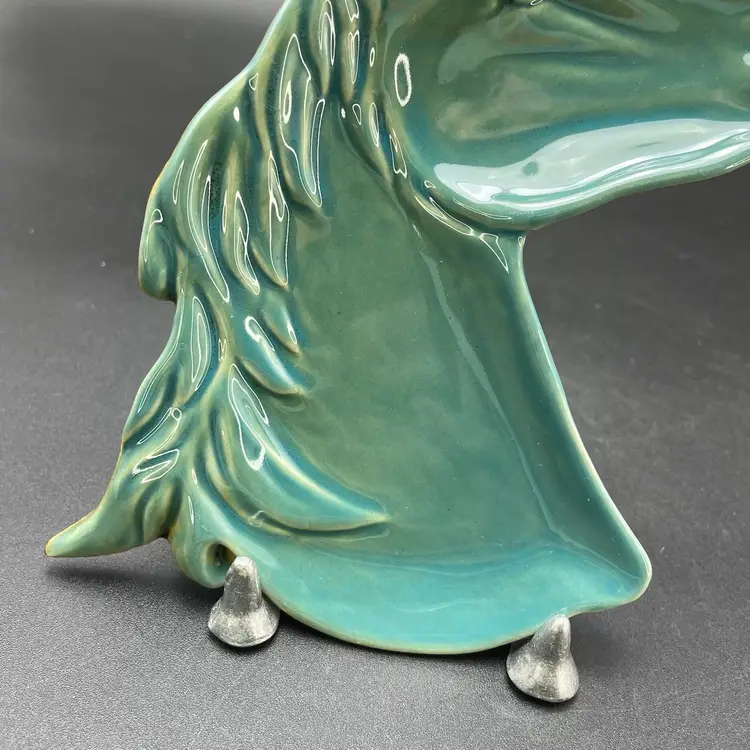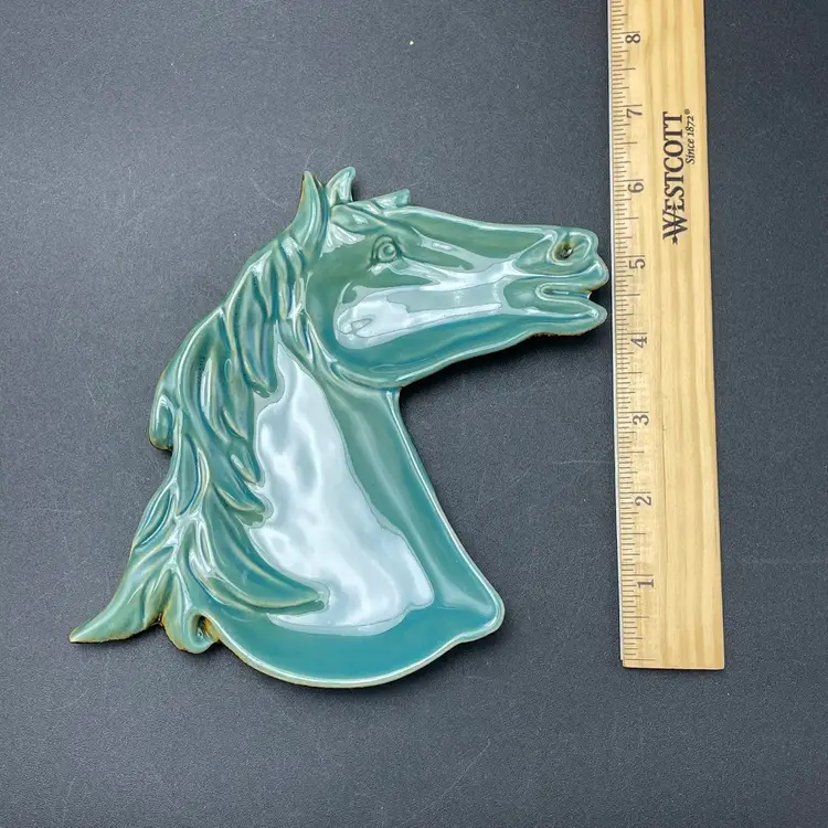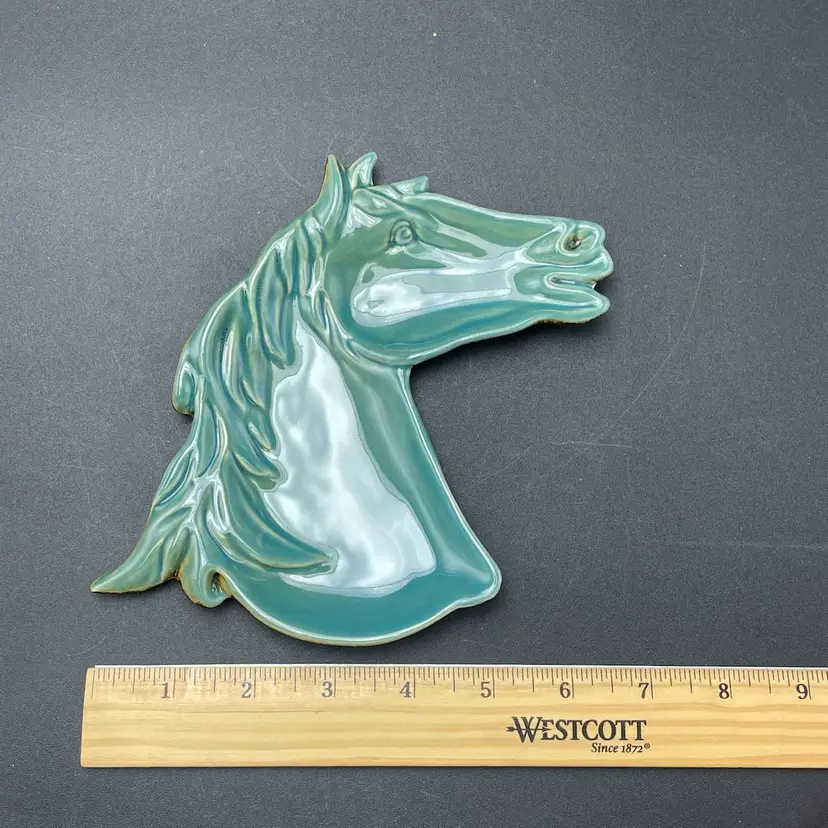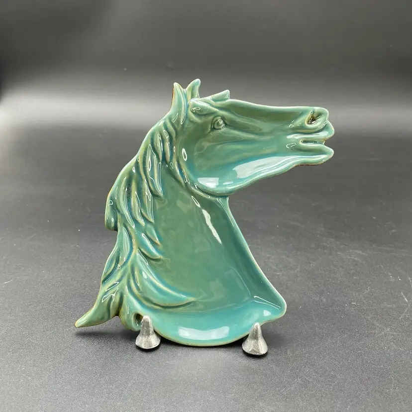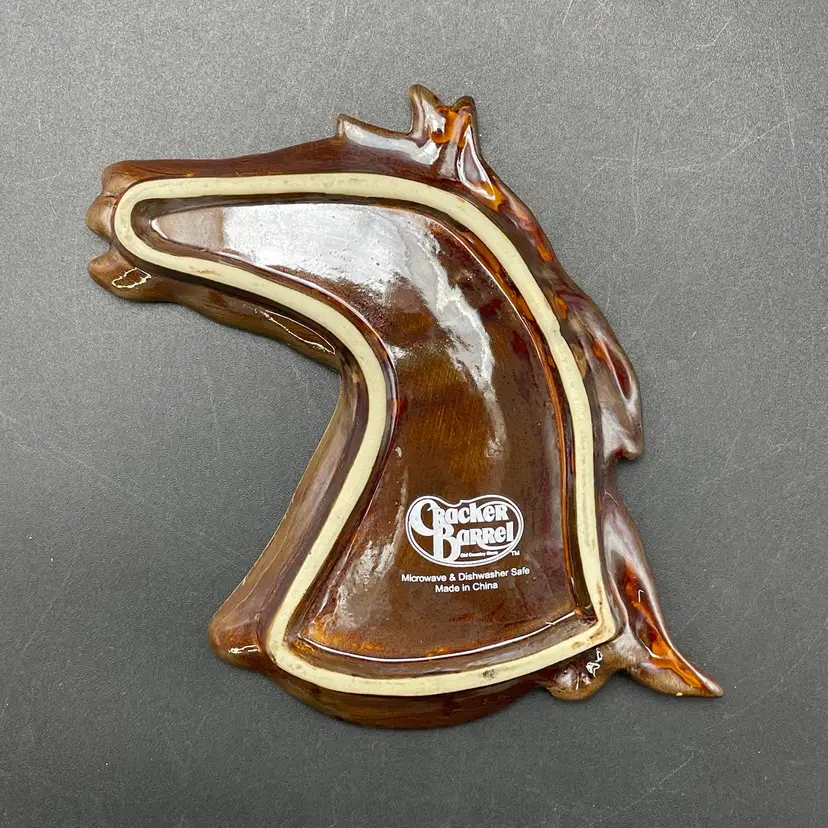 This is a ceramic Cracker Barrel horse head shaped trinket or candy dish. Measures approximately 6" long x 6" across from mane to nose. No chips or cracks. Stand not included.