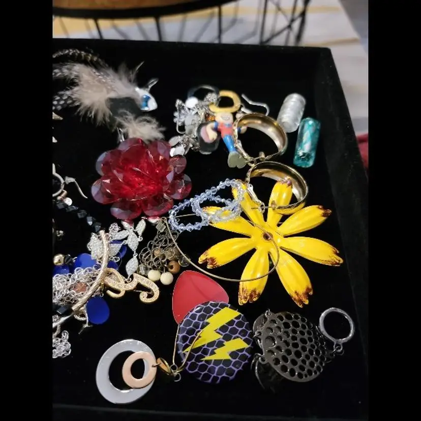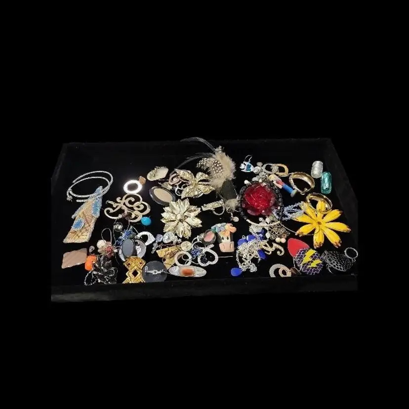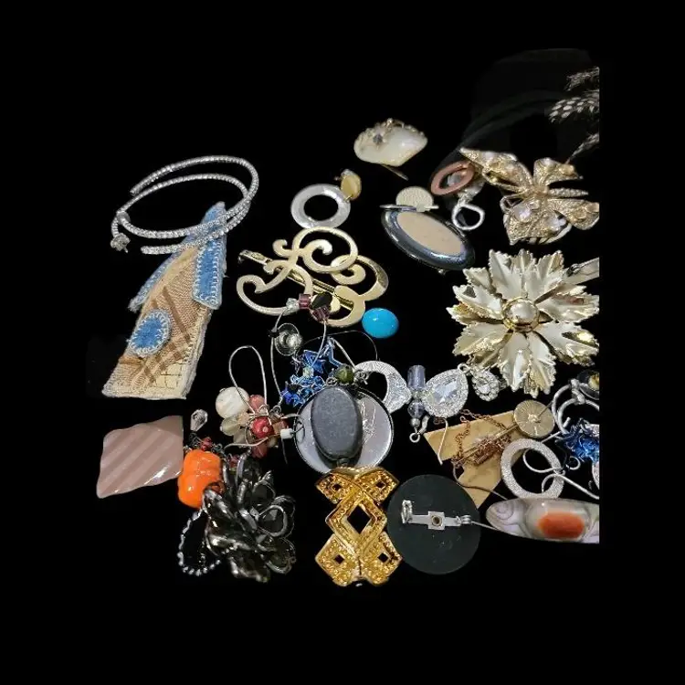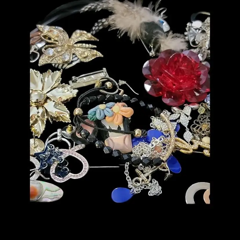 This is for drafters looking for pieces to add to their designs. An array of materials, not particularly vintage or rhinestones here, but fun ideas for your your creations: some Feathers, fabric, beads, acrylic, metal. It is 10 ounces of approximately 50 pieces but no specific count. This will be plus shipping so keeping these bags under a pound, actually about 13 oz shipping weight.