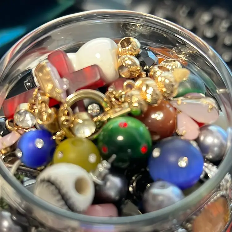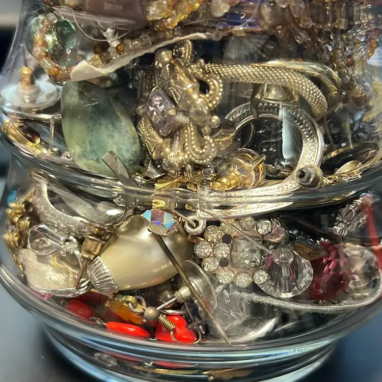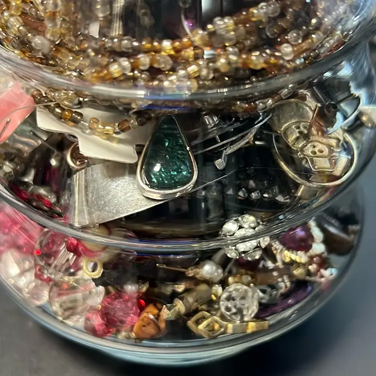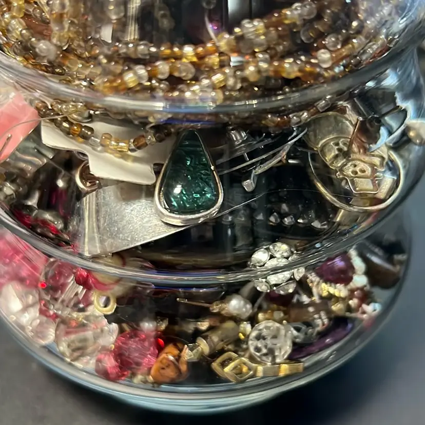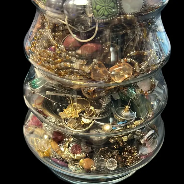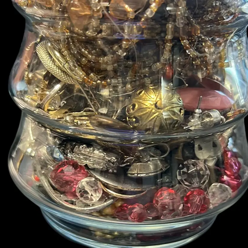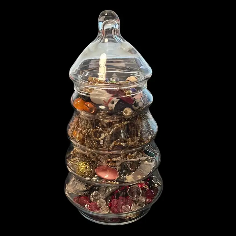 Christmas Special: Craft Jewelry, Stones, Beads, Antique Brass And Glass Buttons, Seed-beads, And Lots Of Rhinestones! 2.9 Pounds Of Goodies! And A Glass Christmas Tree Jar Bonus!!!