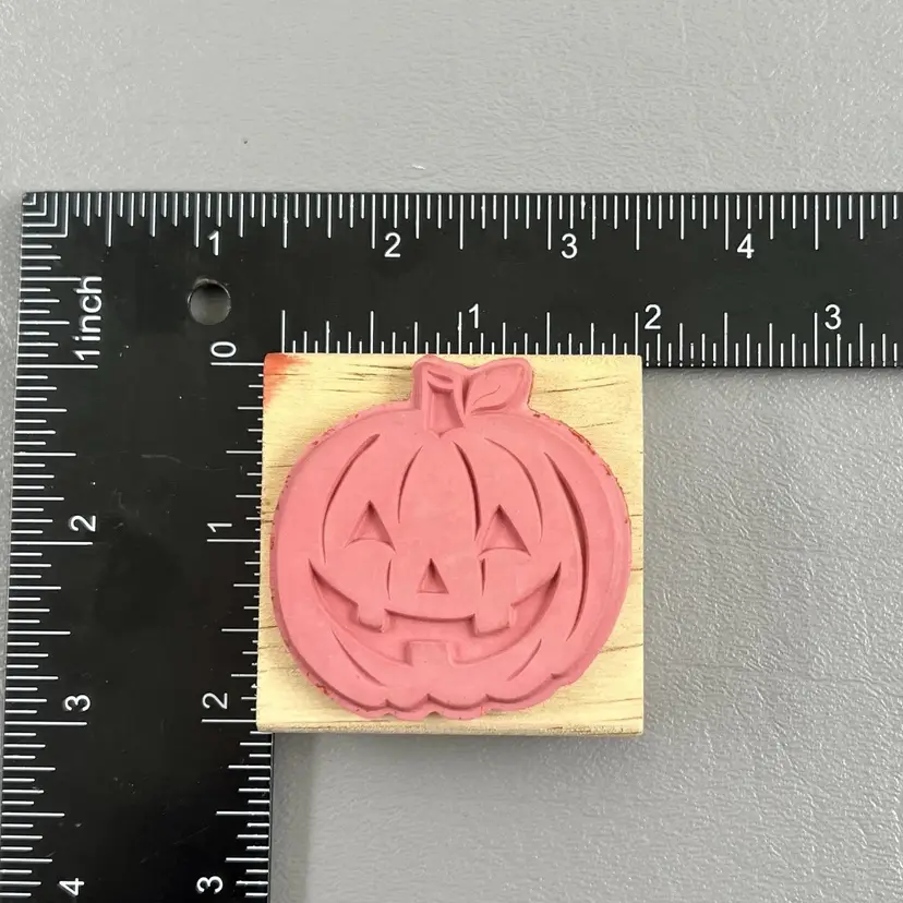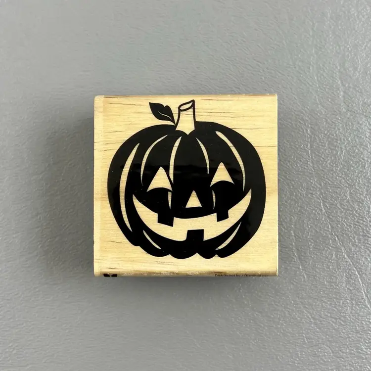 Craft Smart 276870 Halloween Jack O Lantern 2”x2” Wood Mounted Rubber Stamp