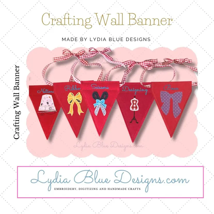 Add a touch of creativity to your space with this Crafting Wall Banner by Lydia Blue Designs. Featuring charming embroidery, this banner is perfect for any craft lover. Each piece is beautifully crafted with attention to detail, making it a delightful addition to your craft room or studio. Hang it up with the included gingham ribbon for a pop of color and inspiration. Materials include stiff felt, quilters cotton fabrics and quality polyester thread.
