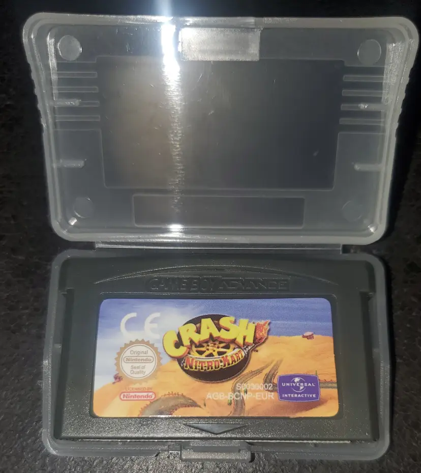Gameboy Advance non oem Crash Nitro Kart video game cartridge. Game cartridge comes with a plastic protective case just like the picture shows. This is the European version.