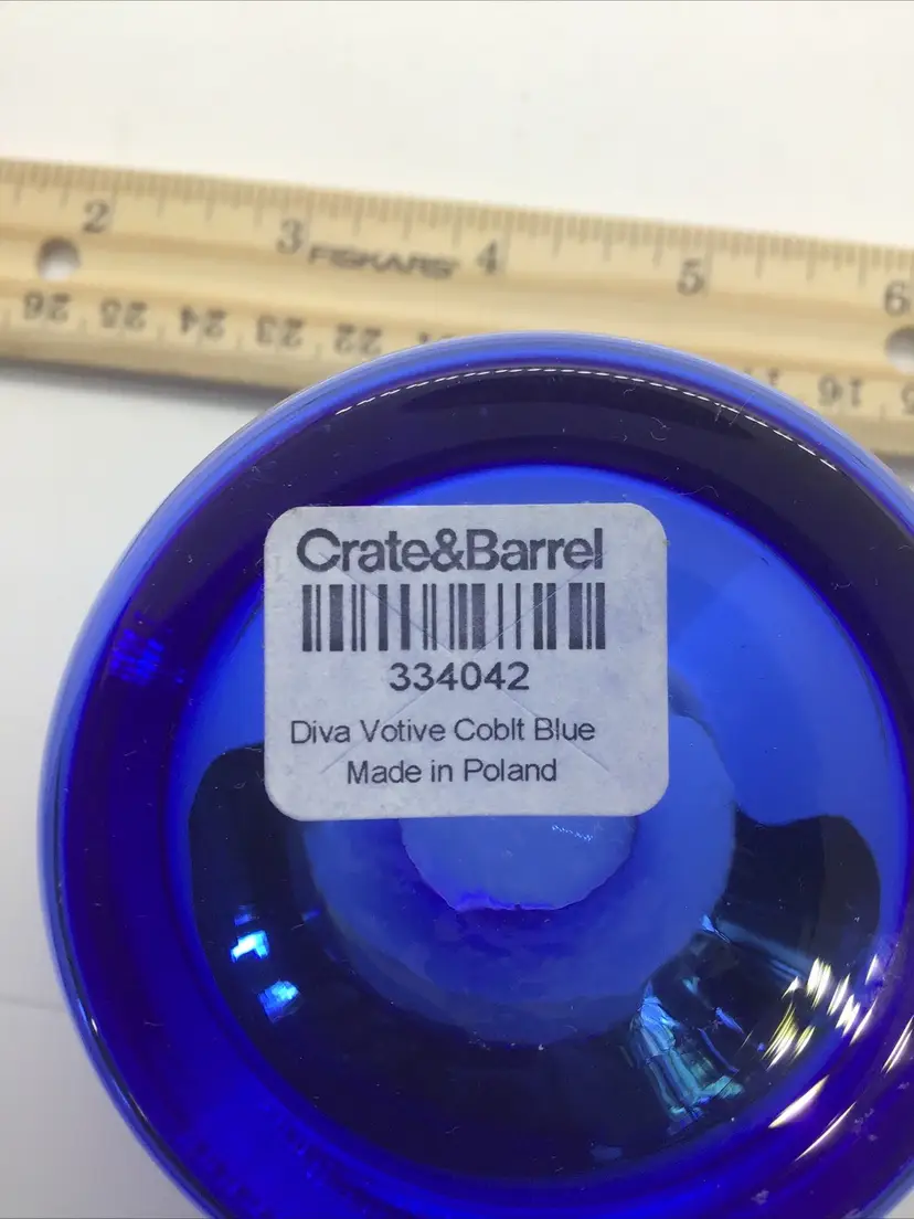 Crate & Barrel Cobolt Blue Glass Votive Candle Holder DIVA Made in Poland. Excellent condition. No chips or cracks. Some have labels, some do not. Comes from a non smoking home.