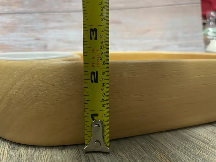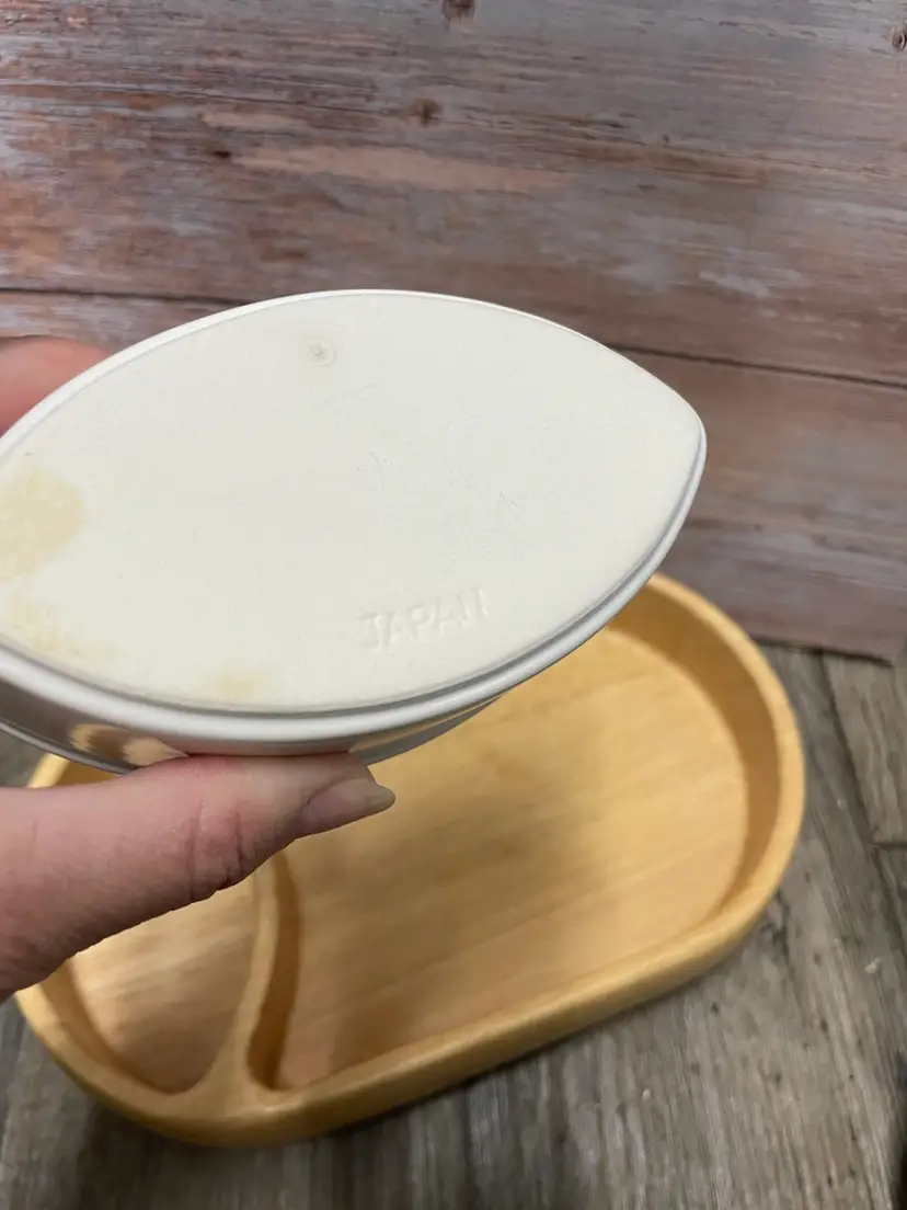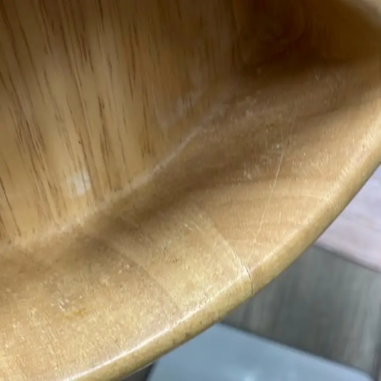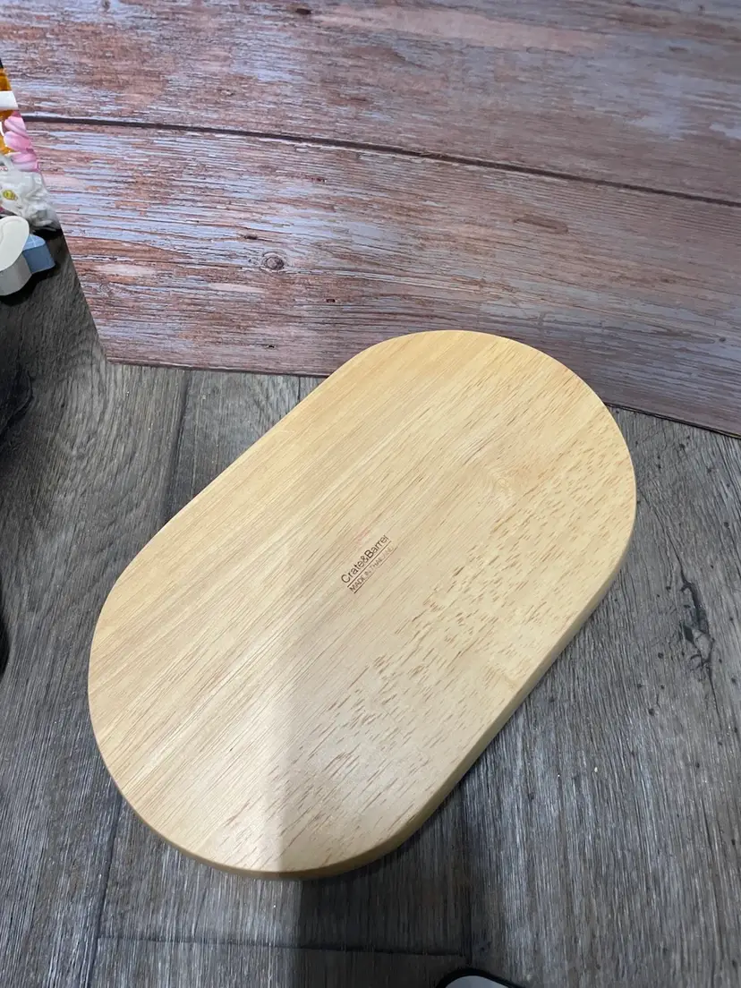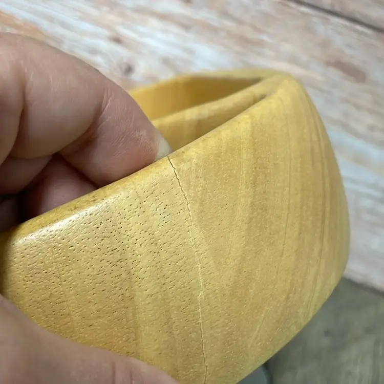 Crate & Barrel wooden chip bowl with ceramic dip bowl. Minor crack in wood as shown in pictures, but does not impair usability. Approximate measurements in pictures.