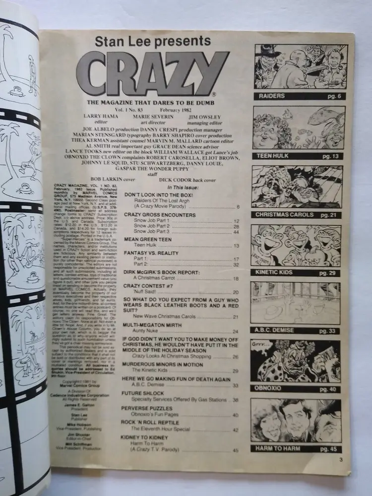 Antique: No Modification Description: Creases, small tears, yellowing, see notes. Publication Name: Crazy Custom Bundle: No Publication Month: October Language: English Publication Date: February 1982 Publication Frequency: Monthly Contributors: None Features: Illustrated Topic: Comic Books, Western Subscription: No Special Feature: Harrison Ford Signed: No ISSN: Does Not Apply Ex Libris: No Grade: Ungraded Publisher: Marvel Publication Year: 1982 Series: Stan Lee Presents Crazy Cover: Raiders Of The Lost Ark Issue Number: 83 Distribution: Non-Paid Circulation Genre: Action & Adventure, Art & Photography, Cartoon, Celebrity, Classics, Comics, Crime & Detective, Horror & Monster, Humor & Satire, Illustration, Manga & Anime, Movies & TV, Science, Science Fiction, Theatre, Movie Adaptation Country/Region of Manufacture: United States