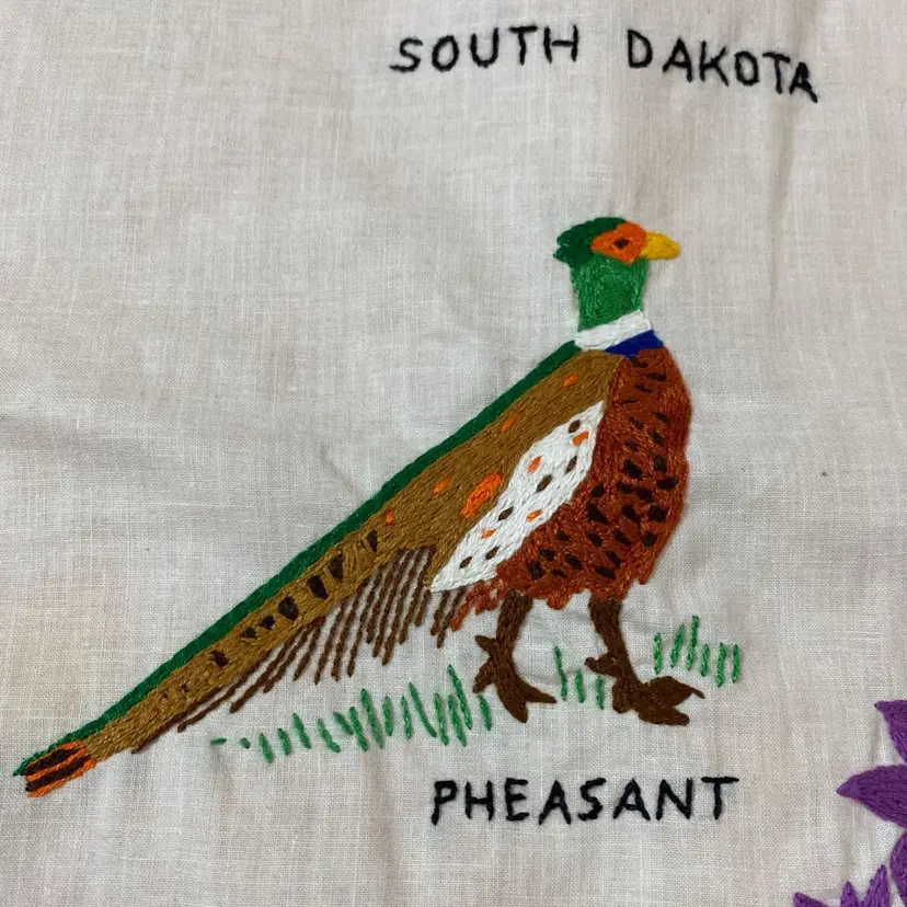 Size: 11” x 11” Condition: stain above the pheasant’s tail. As shown in photo. Please see other photos as it is part of my description 😊.