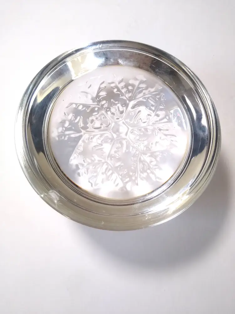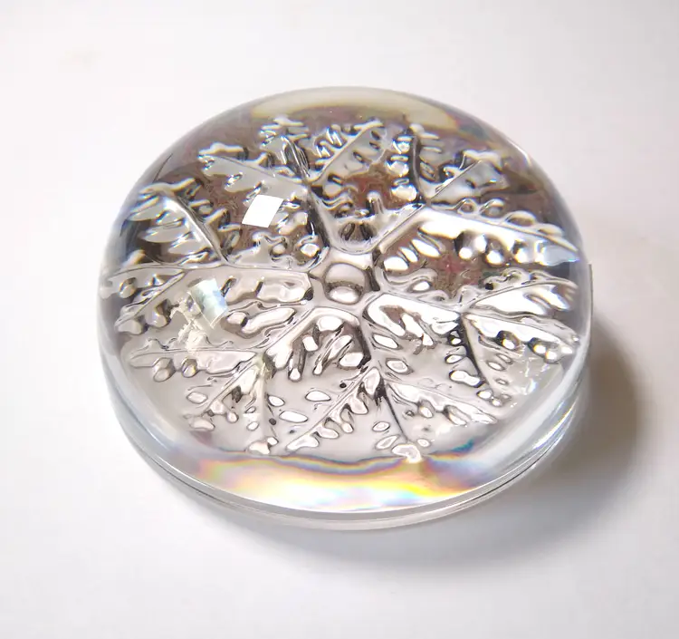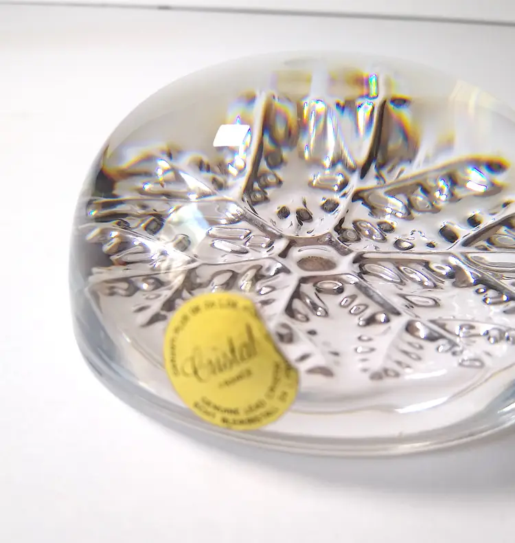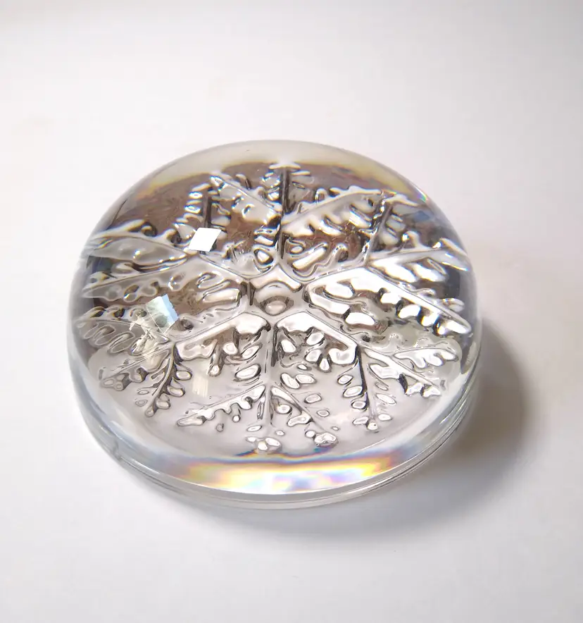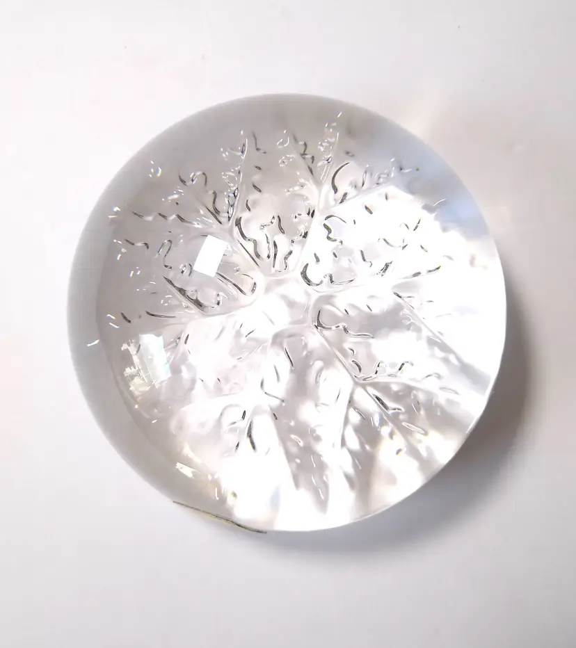 This Paperweight measures approx 3.5 inches across at its widest point and approx 1.5 inches high.