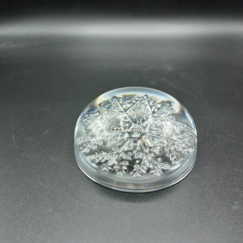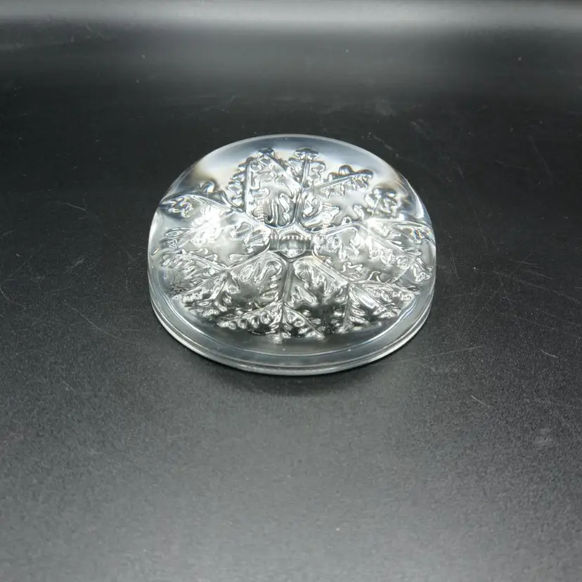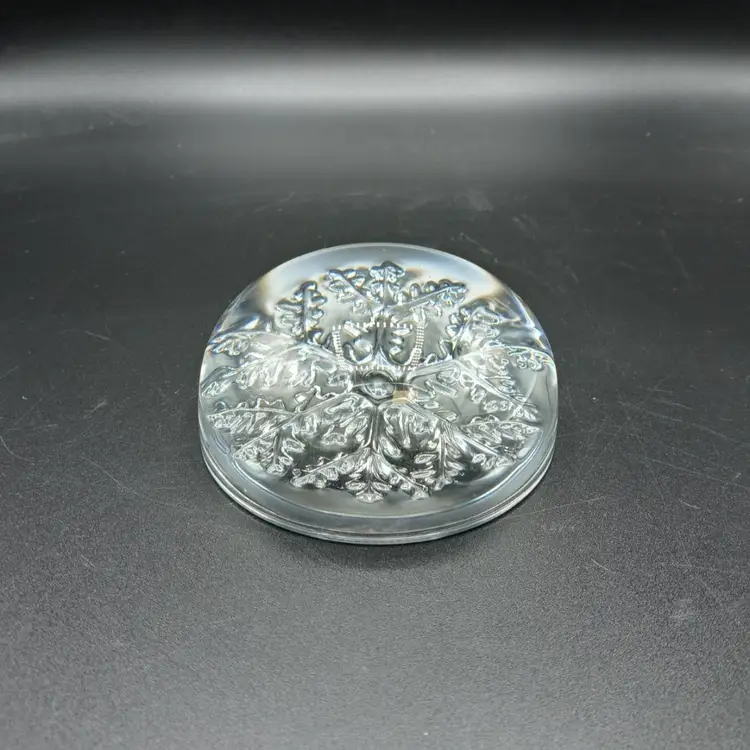 Lovely lead crystal paperweight in good condition with no chips or cracks. Measures 3 1/2" wide and 1 3/4" in height.