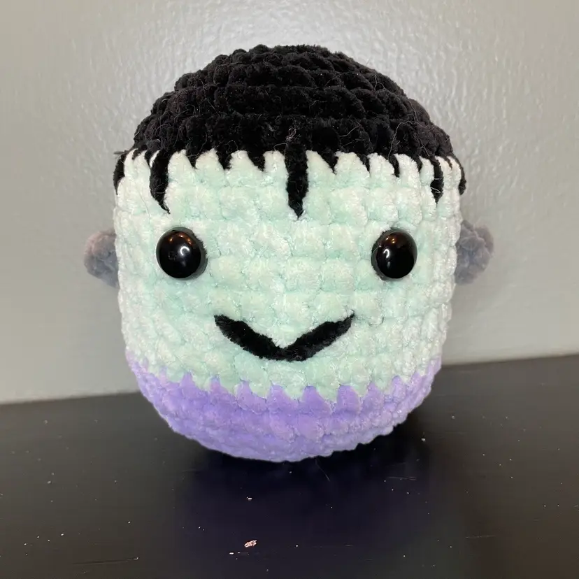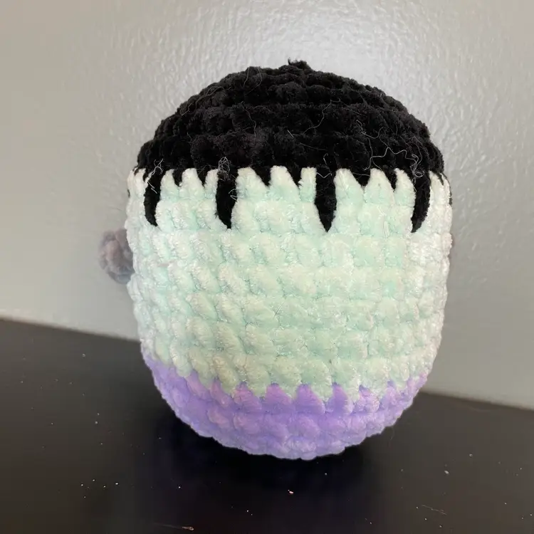 Hand Crocheted using 100% polyester chenille yarn, plastic safety eyes, and polyester fiberfill.