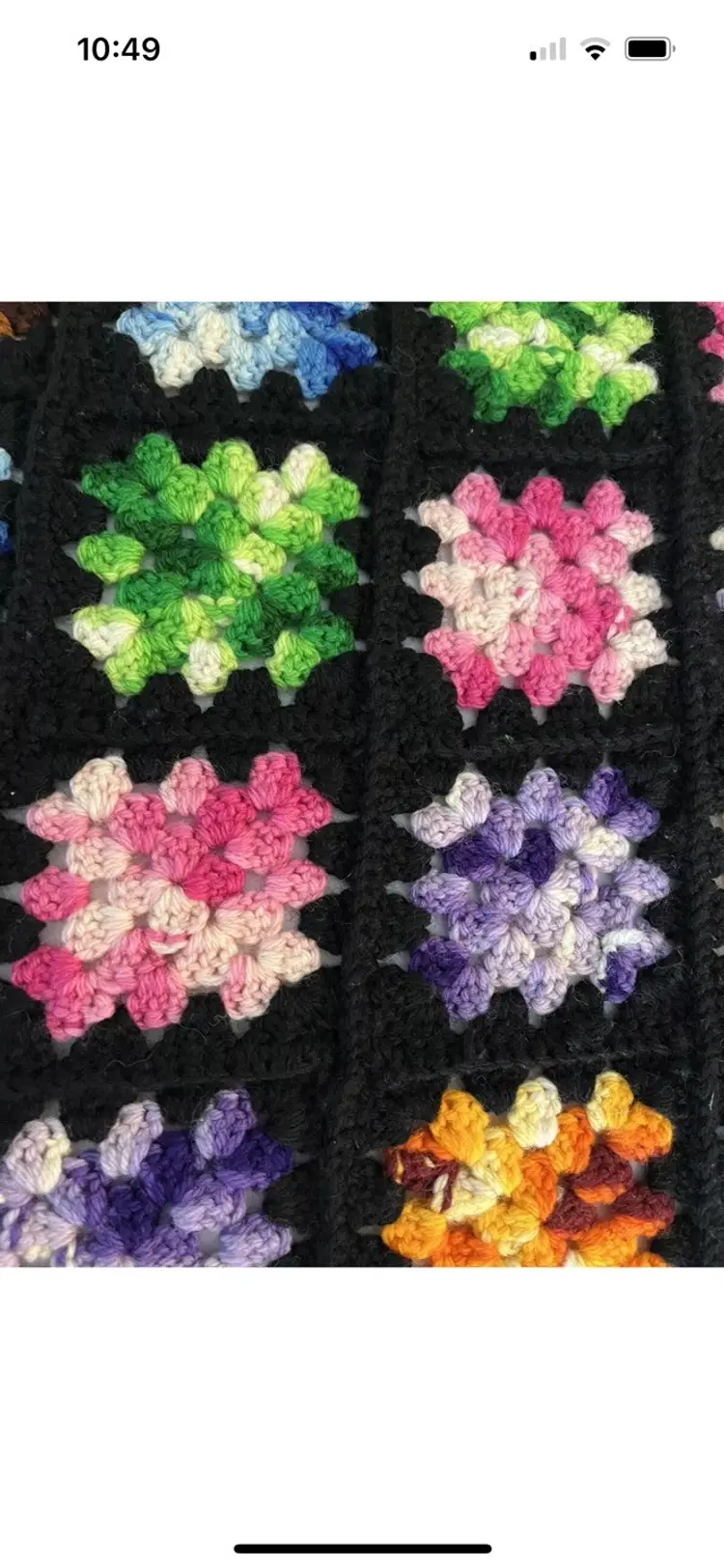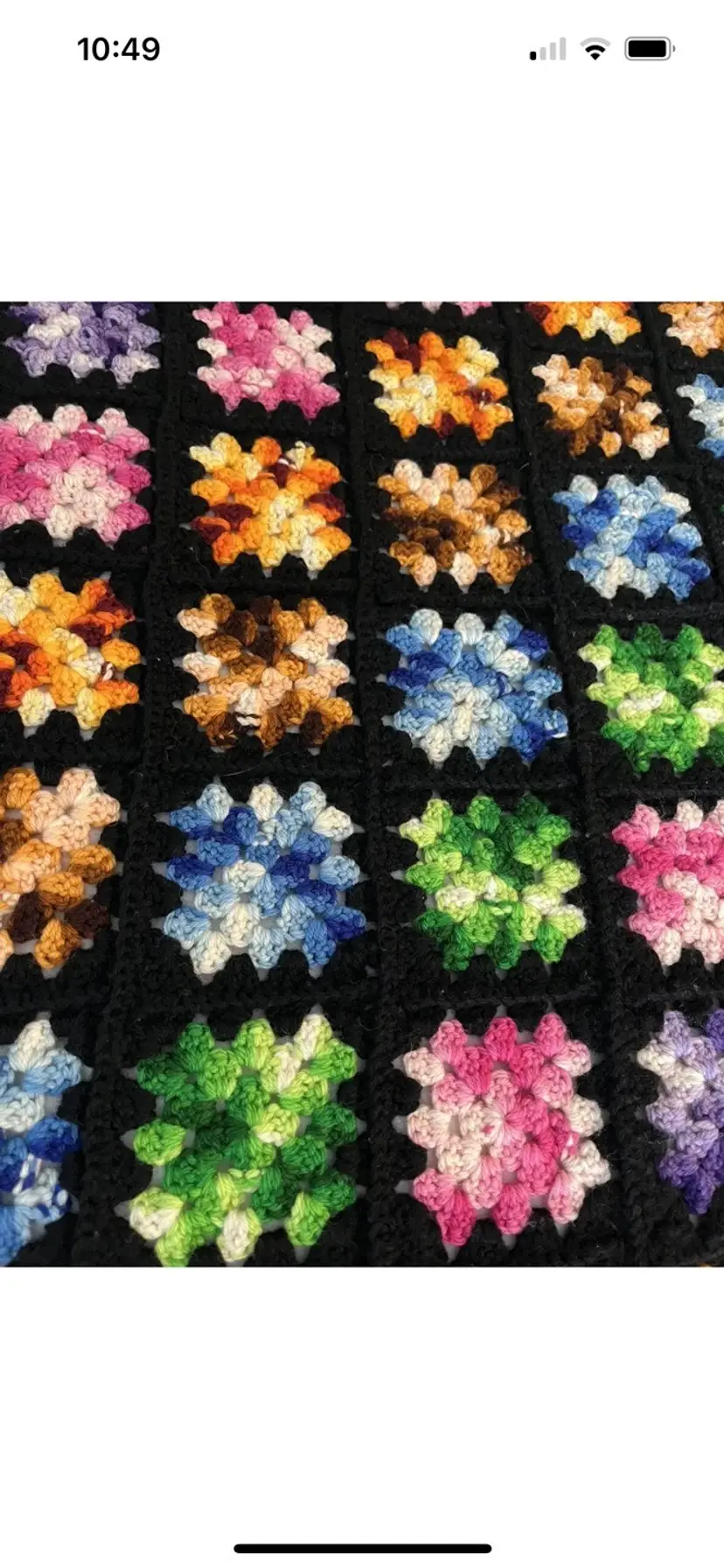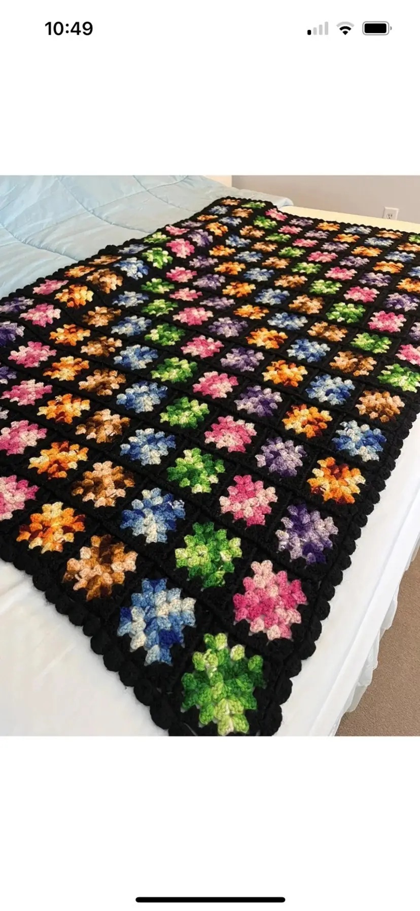 Vintage Granny Square Afghan Blanket Throw Crochet Black Multi Color