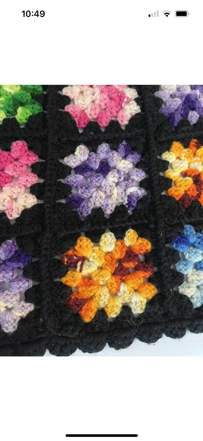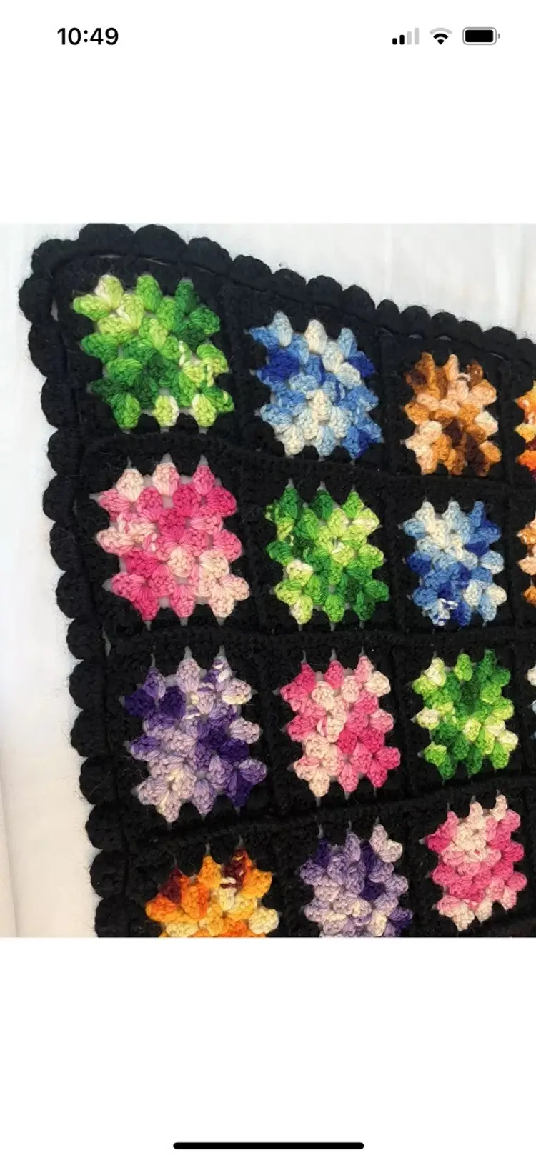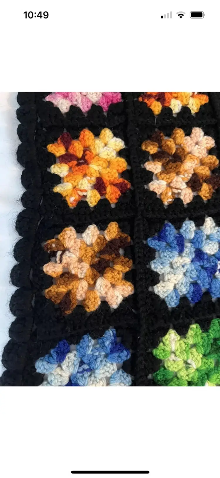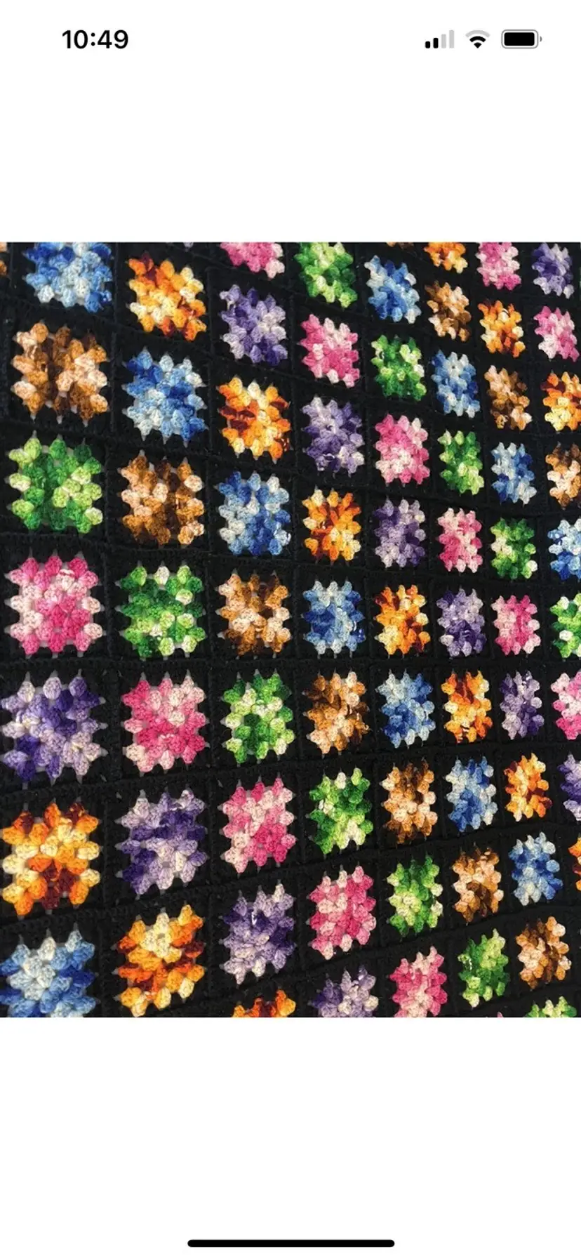 Vintage Granny Square Afghan Blanket Throw Crochet Black Multi Color