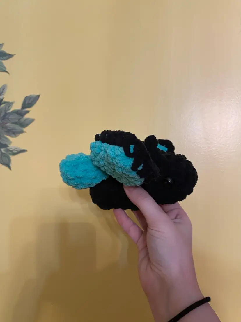 Crochet butterfly is in good condition. Safety eyes are not recommended for children three years of age or younger. Butterfly is approximately 5 1/2” x 6”