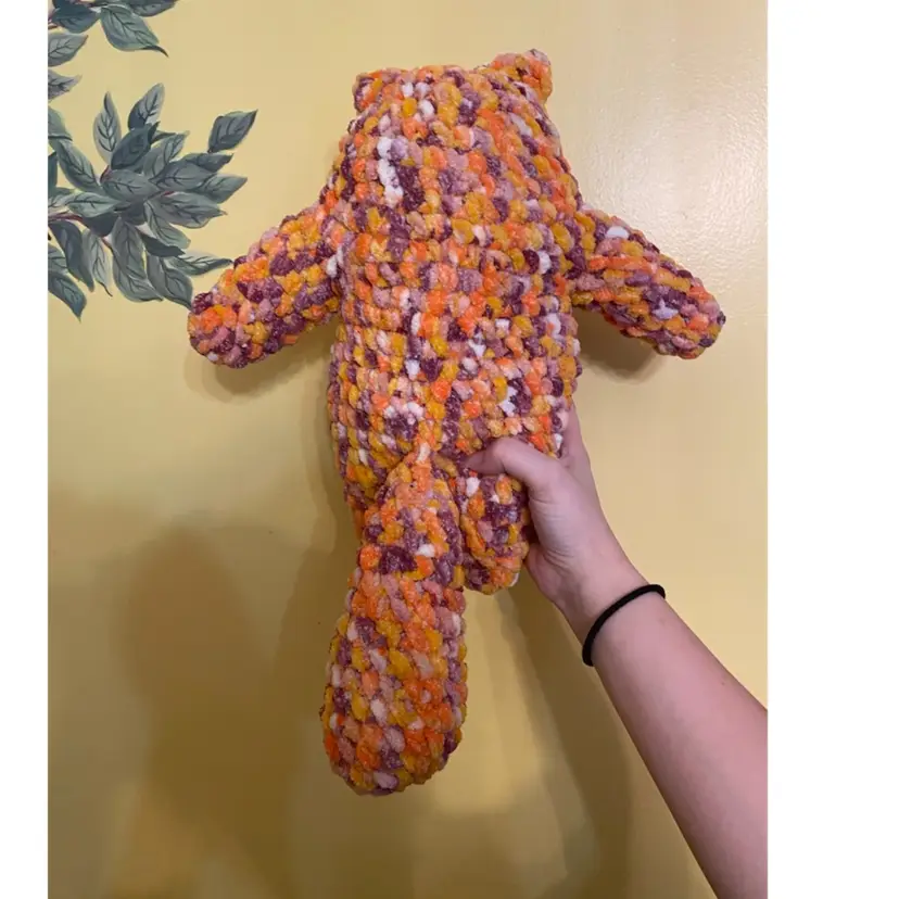 Crocheted Cat Approximately 17 X 13 1/2 Safety eyes are not recommend recommended for children three years of age or younger .