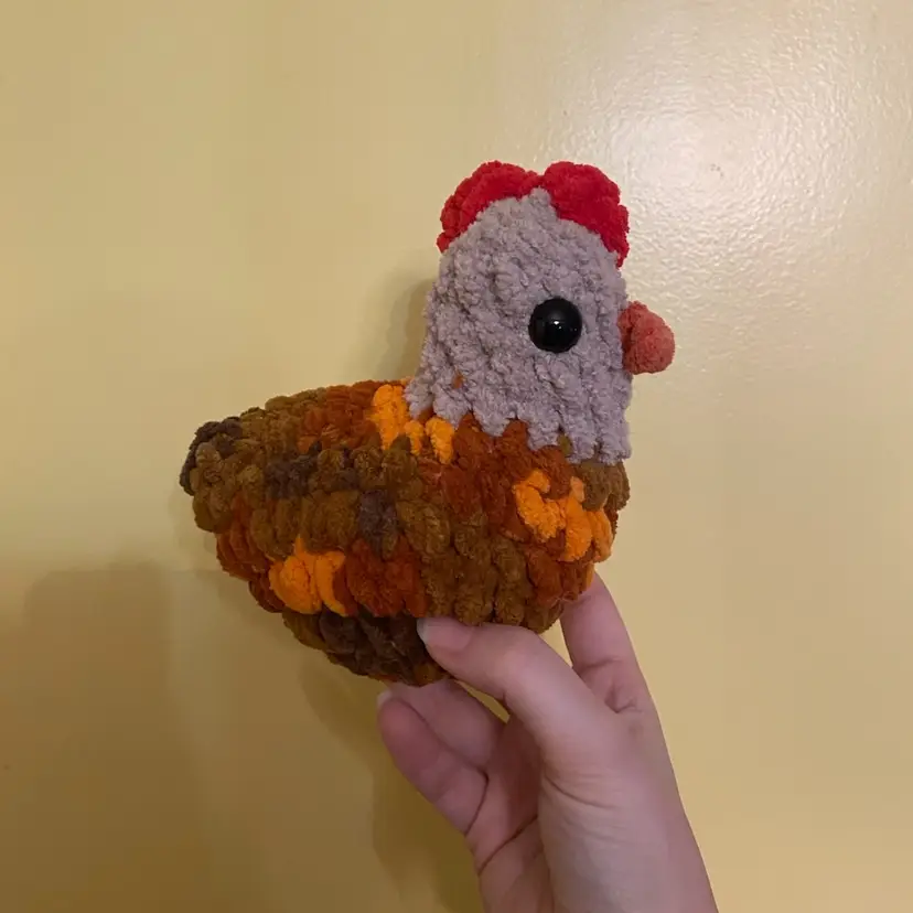 Crochet chicken is in good condition. Safety eyes are not recommended for children three years of age or younger.